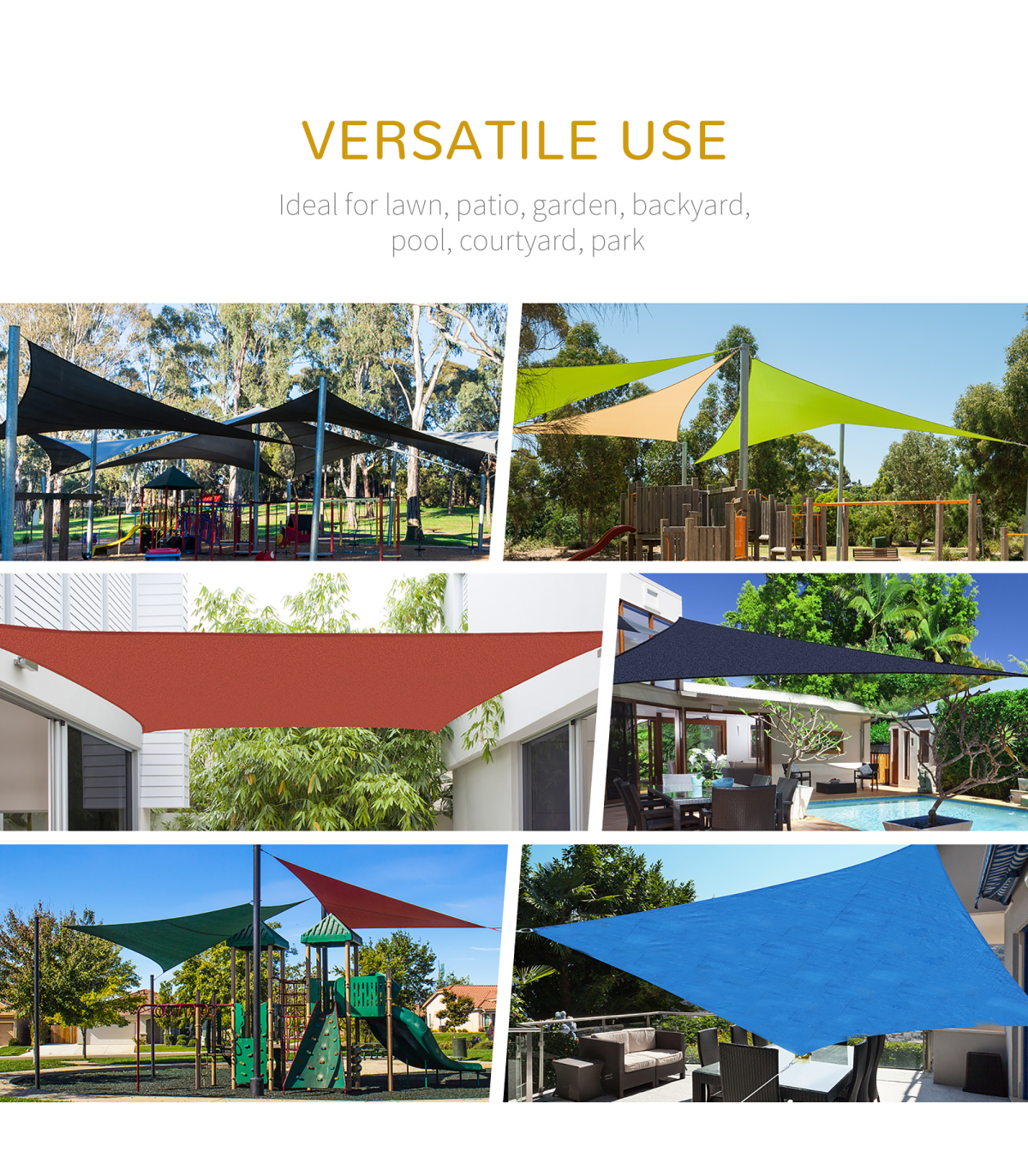 Perfect for any kind of outdoor space - gardens, driveways, allotments etc. Thick material shields direct sun underneath, keeps you cool Double stitched corners with stainless steel rings to attach and hold in place to the chosen area Not to be left out in heavy wind and rain Carry bag included, assembly required