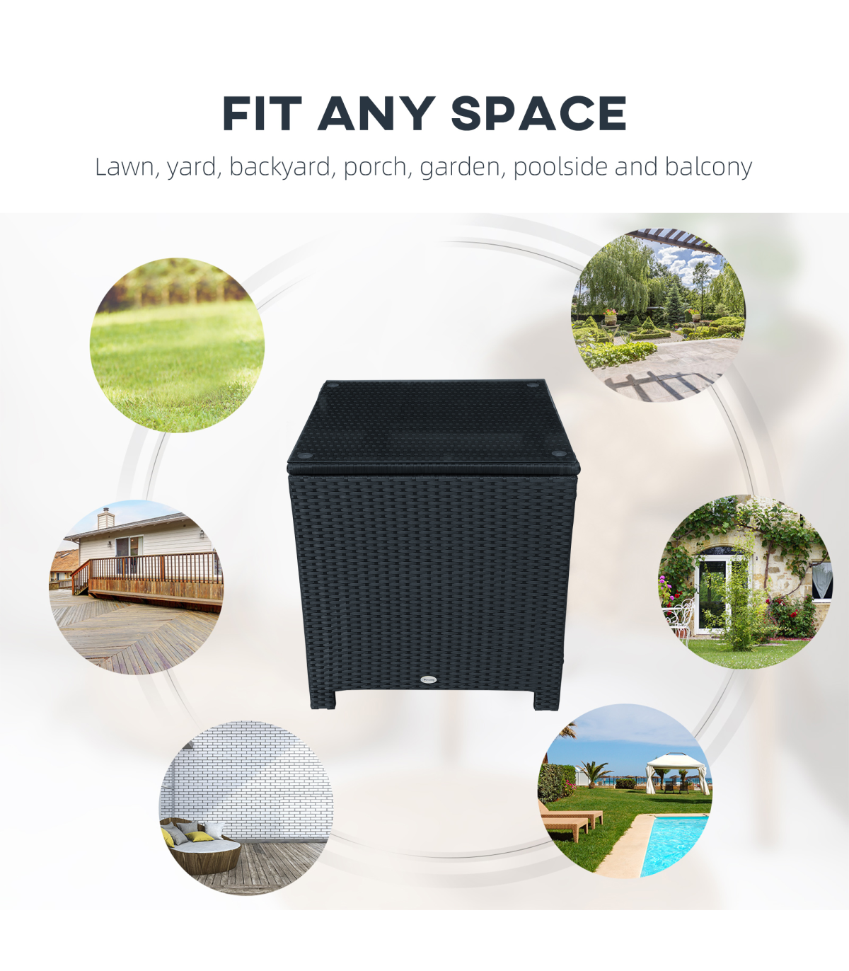 Ensure you have the perfect spot to keep everything you need close to your outdoors, thanks to this side table from Outsunny. Square in shape, it has been made with a powder coated and galvanised steel frame, keeping the structure in check and stable, with PE wicker rattan wrapped on the outside, giving it a versatile look which copes with mild weather damage to ensure it will last in your furniture for many seasons. A 5mm thick tempered glass sits on the top, giving it a sleek look and an even surface which can be cleaned easily. Finished with four legs for balance.