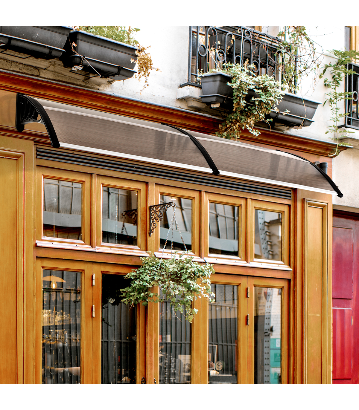 Curved polycarbonate main panel, resistant to rain and snow, places well outside your doors and windows