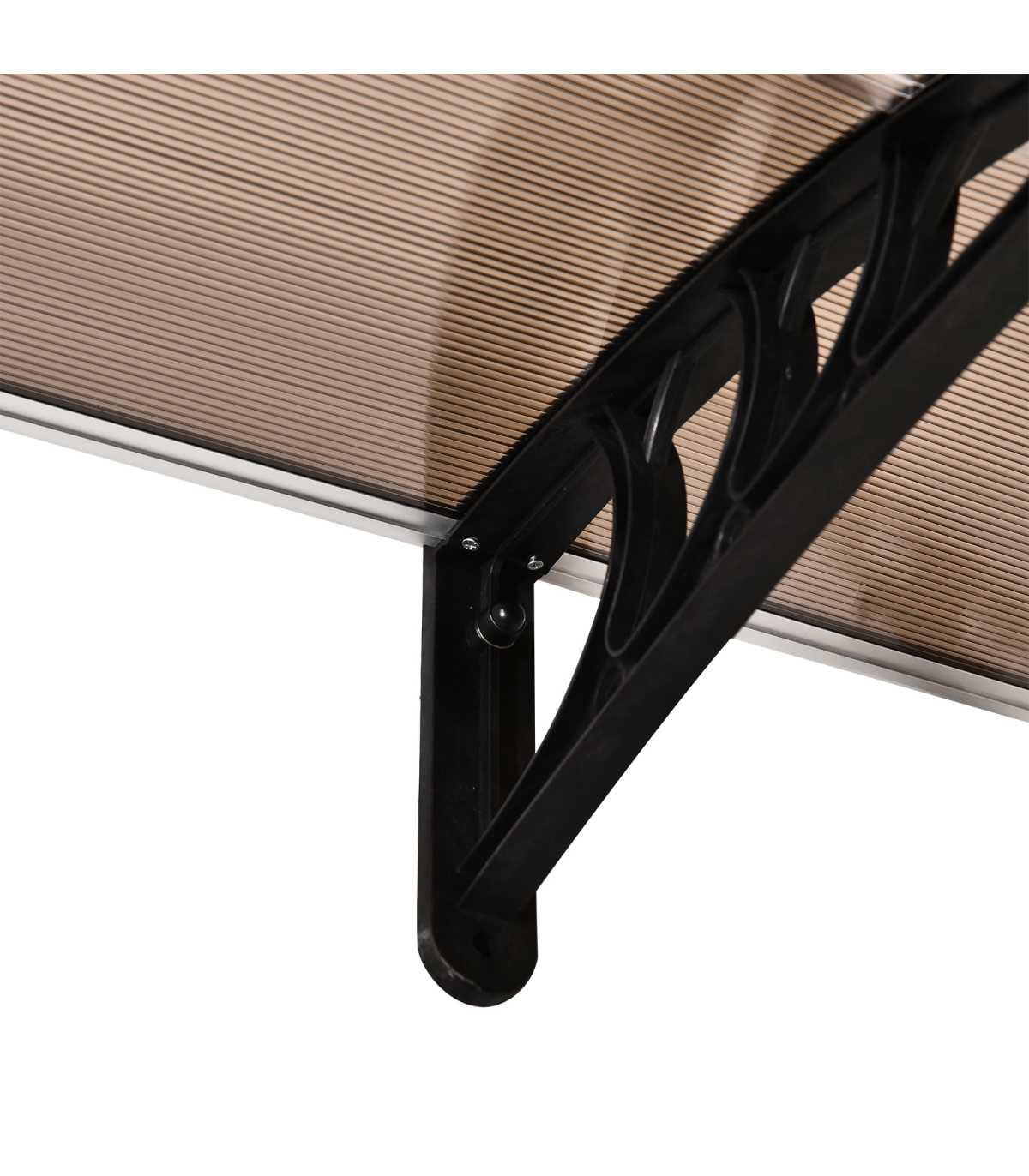 Rigid plastic bracket frame, with aluminium bars connecting the two bracket ends together, ensures the awning is sturdy and strong