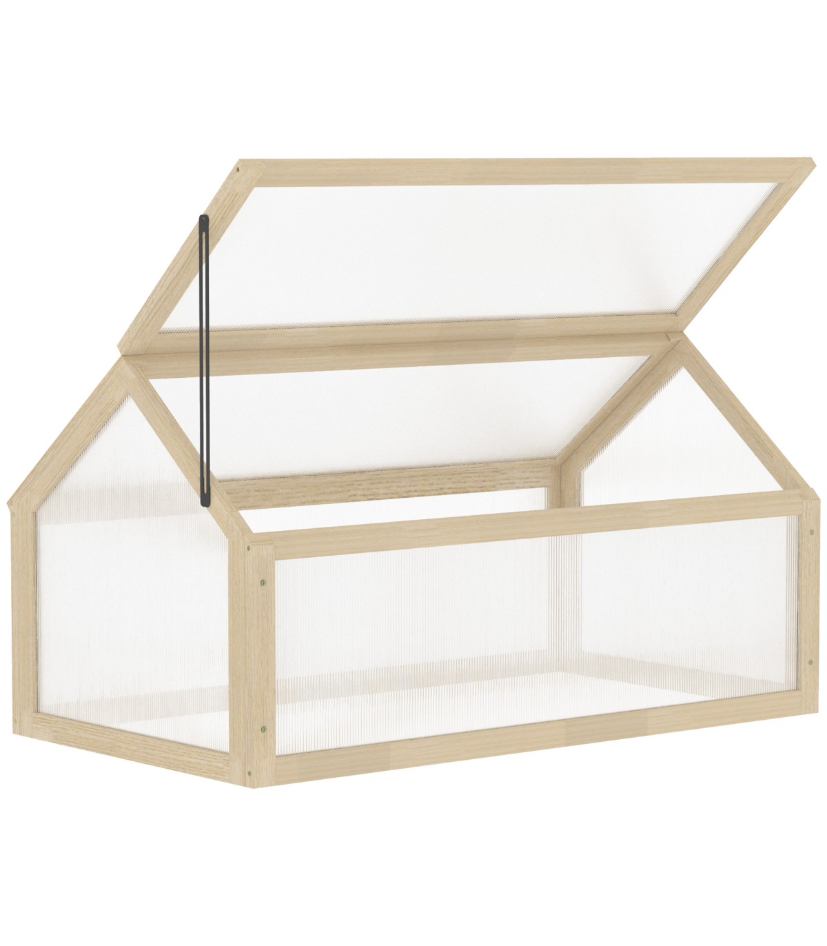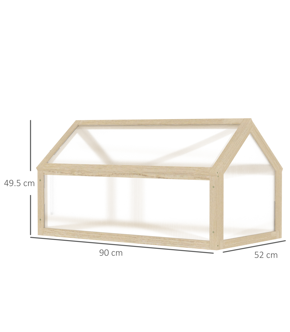 Wooden Cold Frame Greenhouse Garden Polycarbonate Grow House, Natural Outsunny