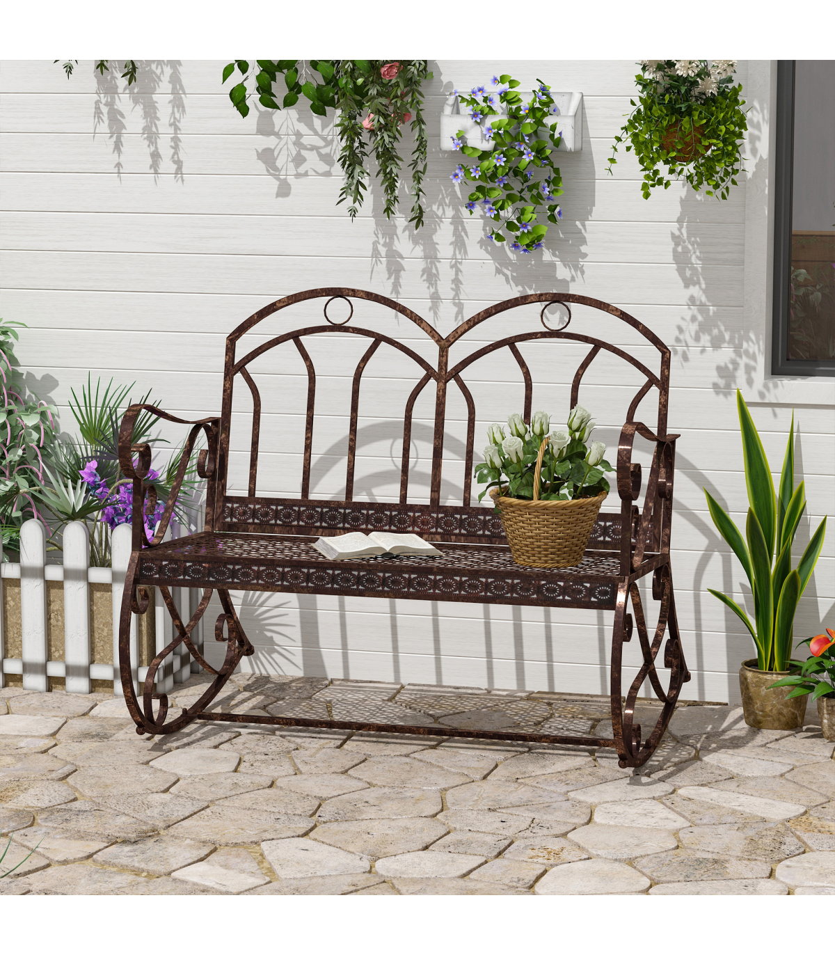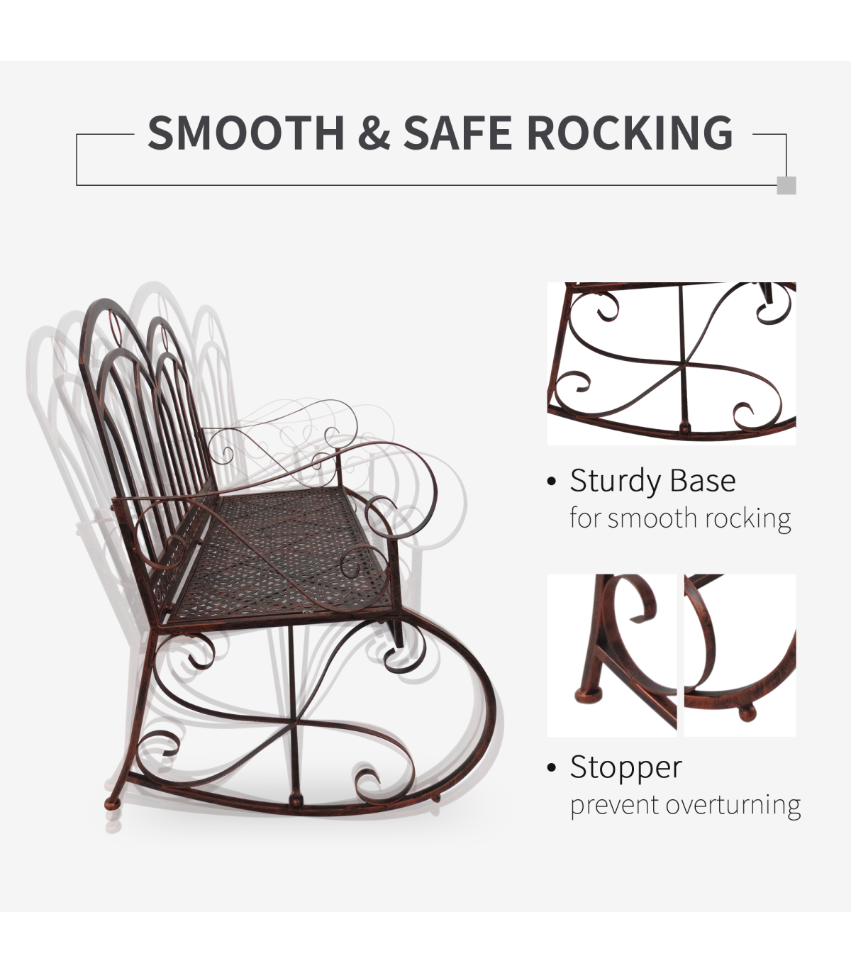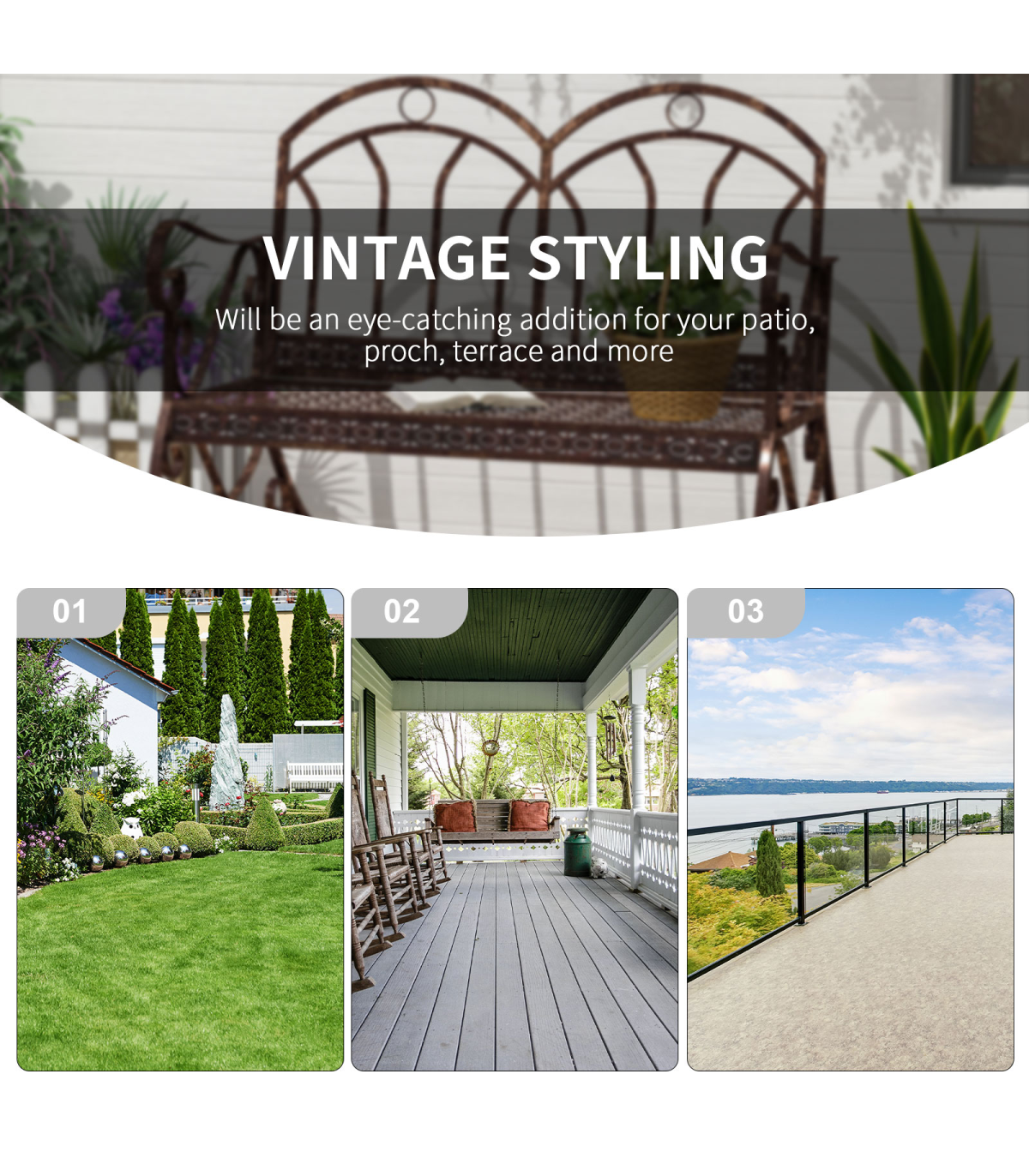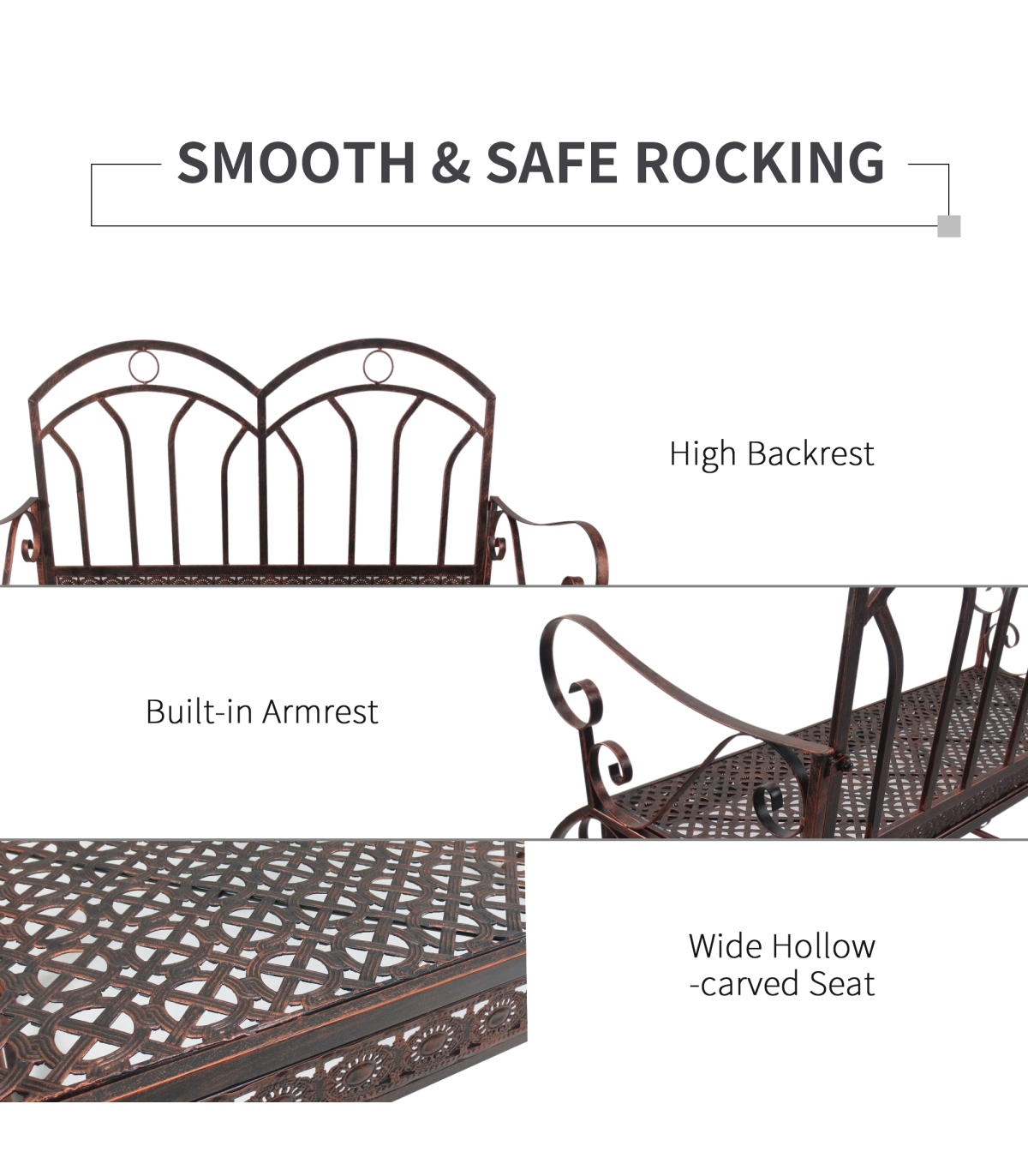 EXQUISITE DESIGN: With hollow-carved designed seat, slat backrest and built-in armrests, this garden rocking bench adds a stylish and chic look that matches any outdoor spaces, ideal for garden, parks, backyards, patios and porches