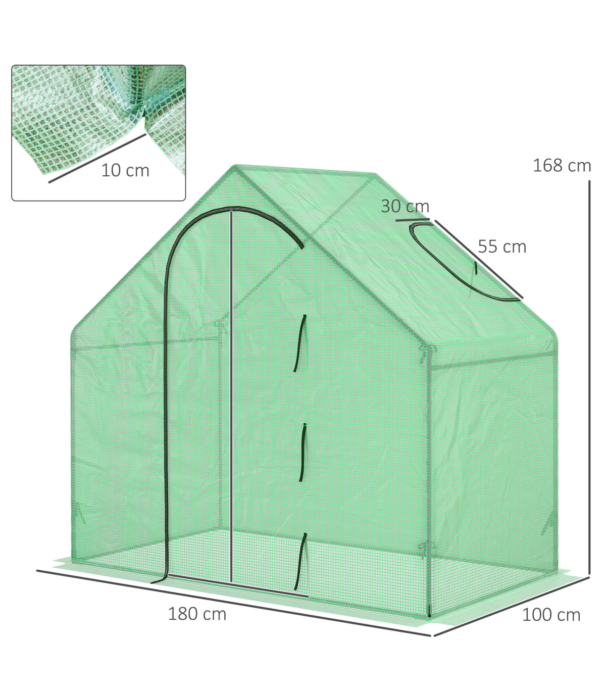 Outsunny Walk-In Portable Greenhouse Mini Grown House Steel Frame Window Green