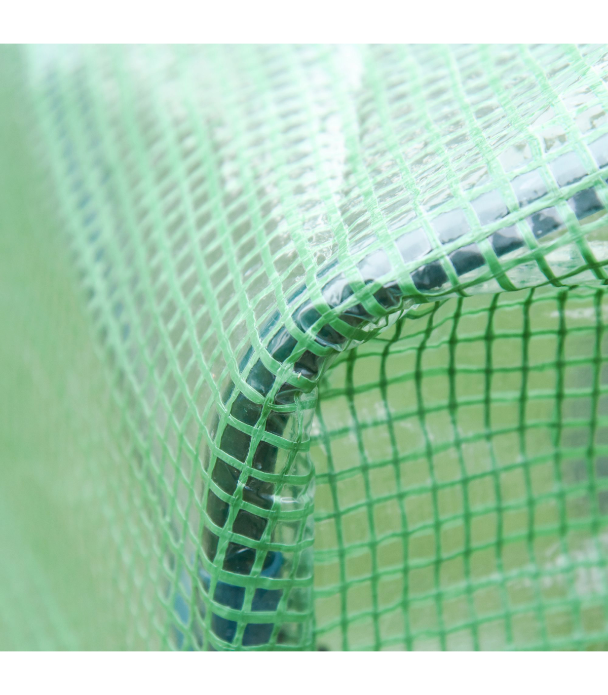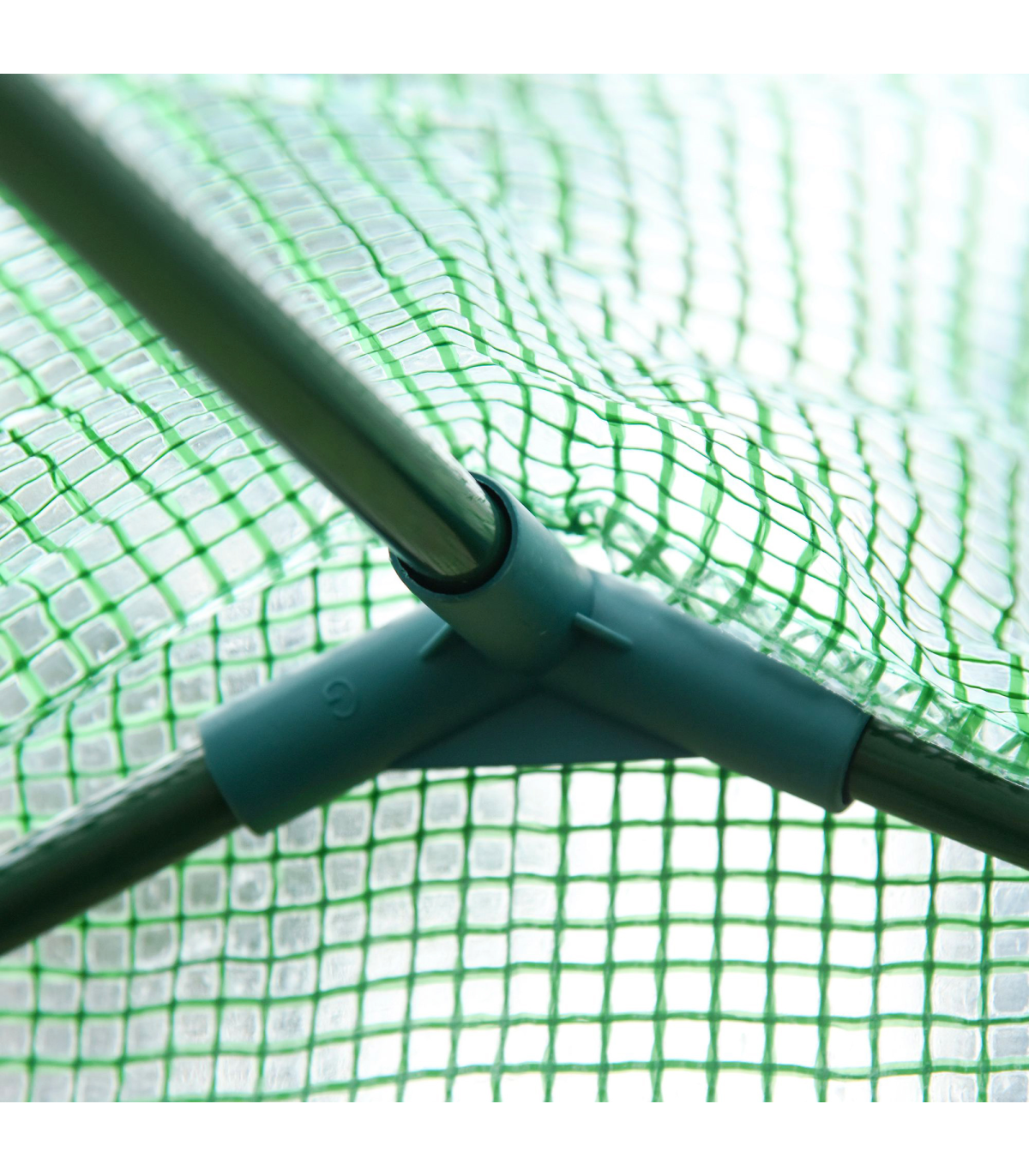 WALK-IN: Large and fully open design gives you plenty of room to set up how you wish. Allows you to grow plants, vegetables and flowers in any suitable outdoor space. Door for easy access and window for ventilation. PLASTIC COVER: Protects inside from light rain, mild wind, also creates a barrier between direct sunlight, allowing plants to grow without any interruptions. 10cm overlap to bury in the soil. STEEL FRAME: A solid structure which keeps in shape. Powder coated for extra strength. Resistant to rust and corrosion. INCLUDED ACCESSORIES: Four guy ropes and four ground stakes to pin to the ground for extra stability. DIMENSIONS: 168H x 180L x 100Wcm. ASSEMBLY REQUIRED. NOTE: Not suitable for bad weather conditions.