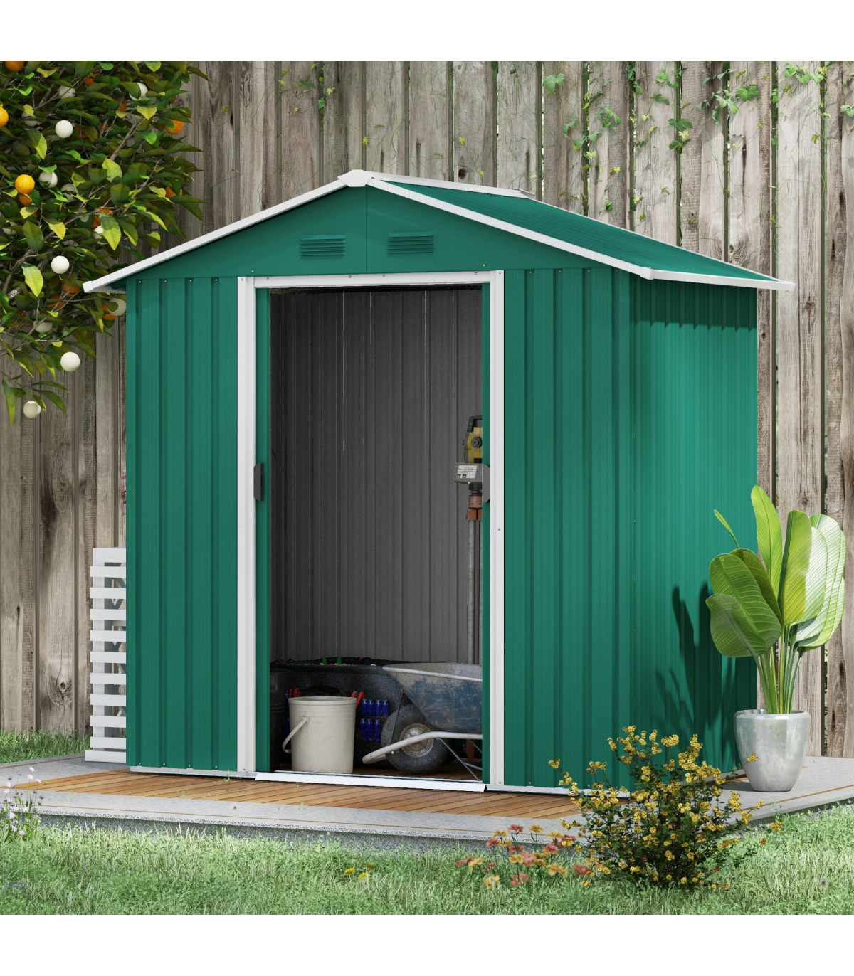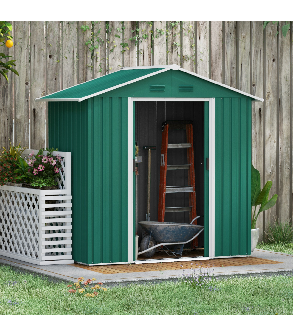 Outsunny 6.5x3.5ft Metal Garden Shed for Garden and Outdoor Storage, Green