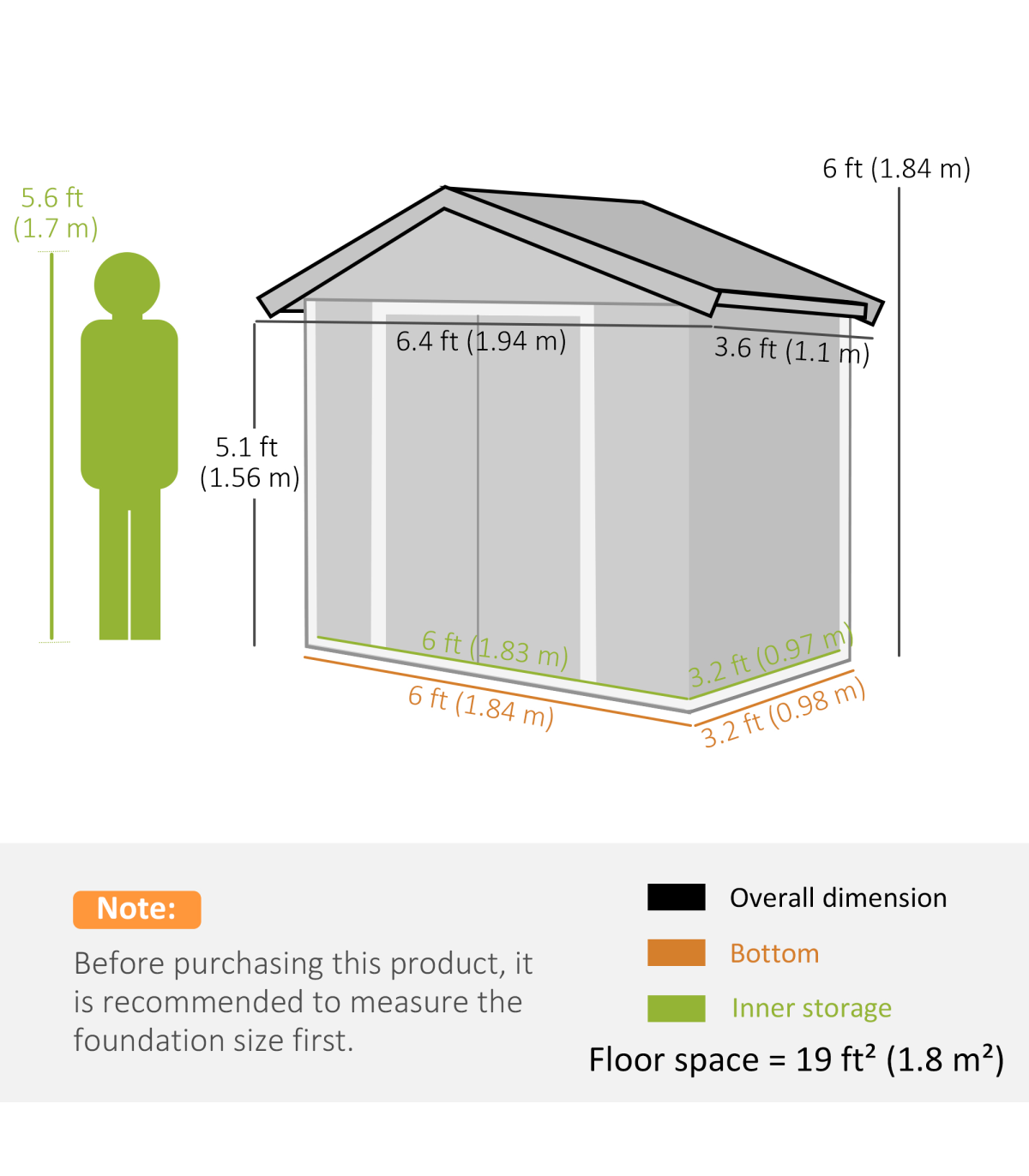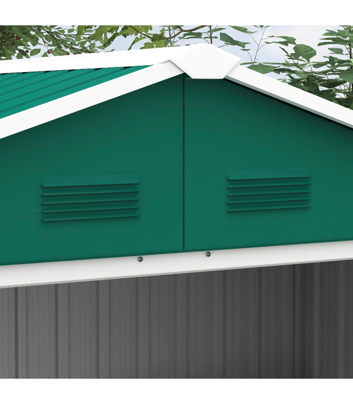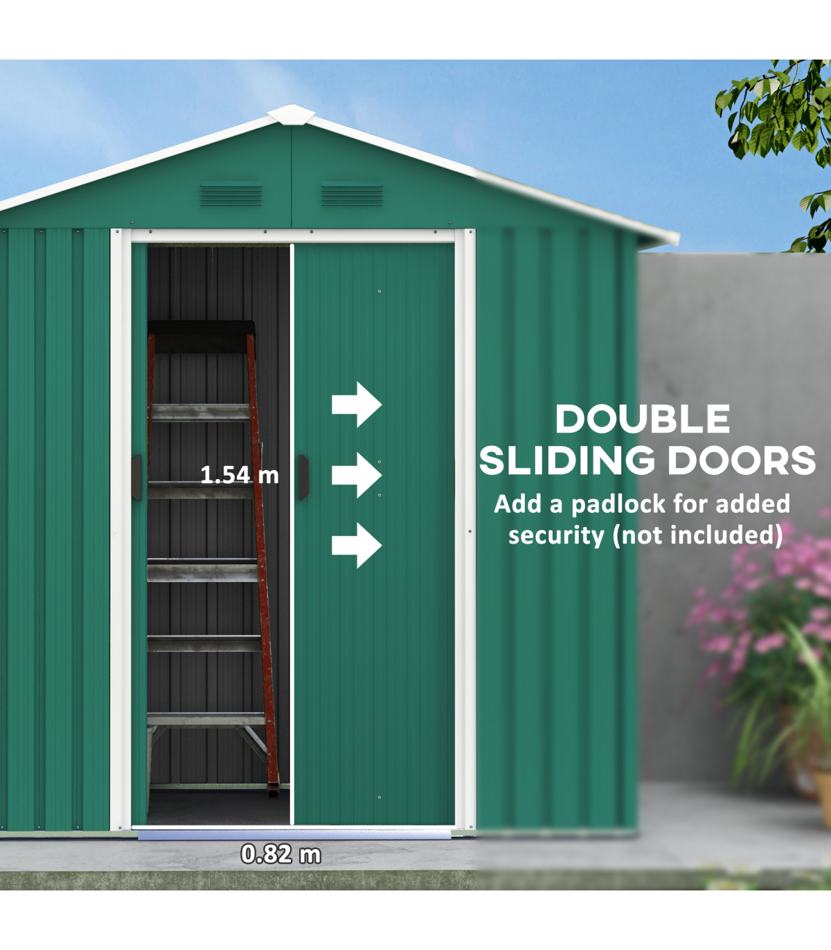 Keep your garden equipment and outdoor essentials locked away securely with this Outsunny 3.6 x 6.3ft metal storage shed. Built from galvanised steel for enduring reliability, double sliding doors on the front for easy access and four vents for air to circulate and prevent moisture build-up. The double door shed is finished with a protective weather coating - idea for outdoor use, all year round.