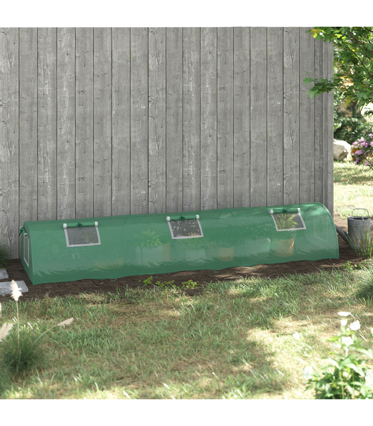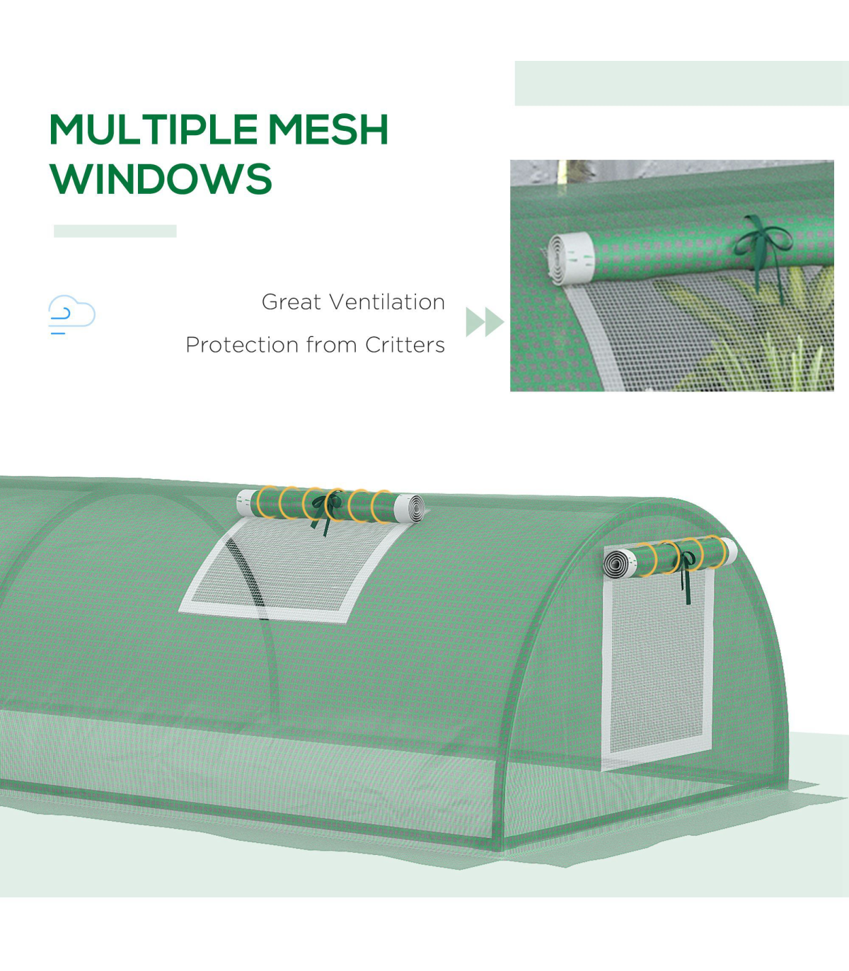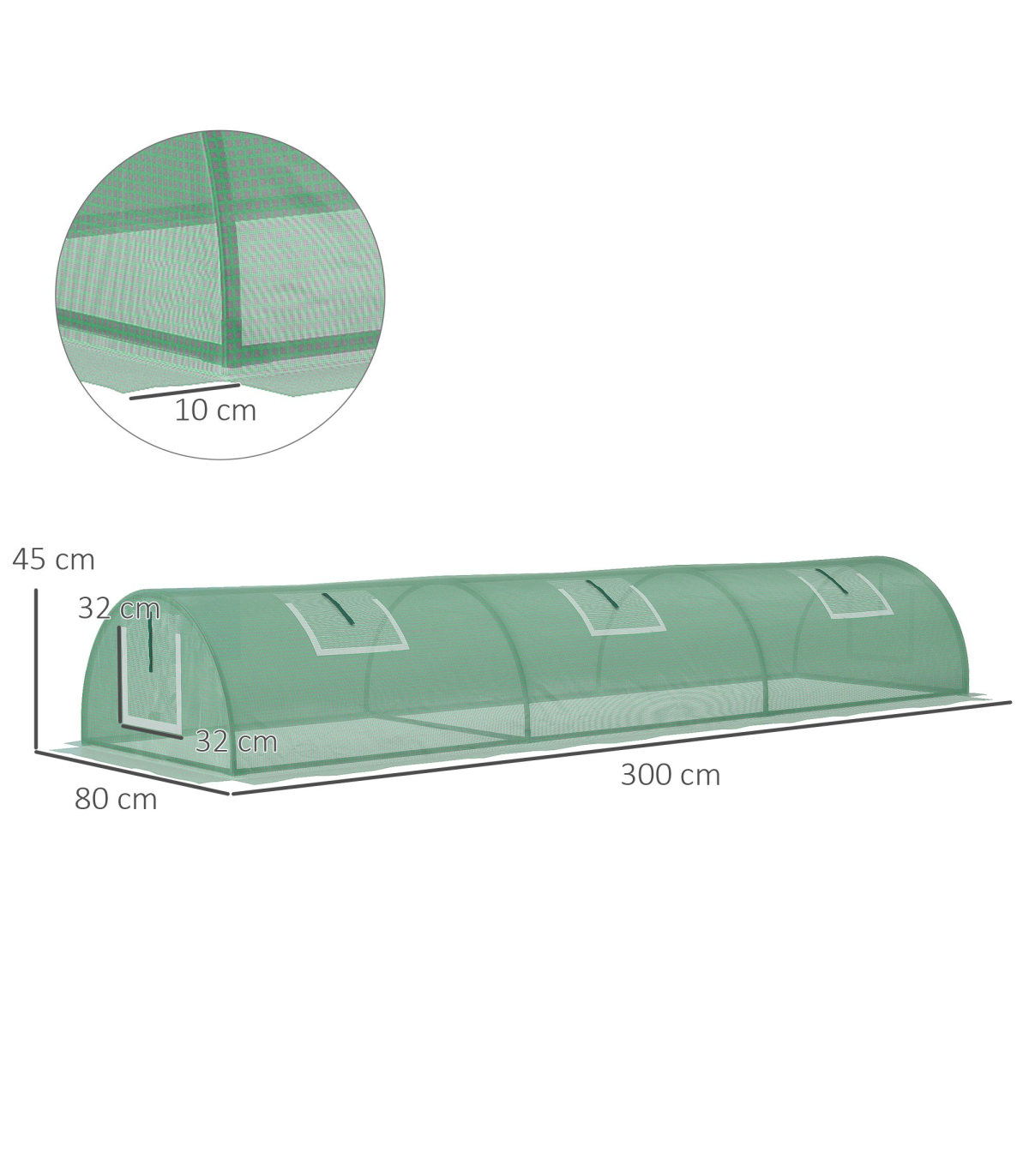 Outsunny PE Mini Greenhouse, 3m Portable Tunnel Green House with 5 Mesh Windows