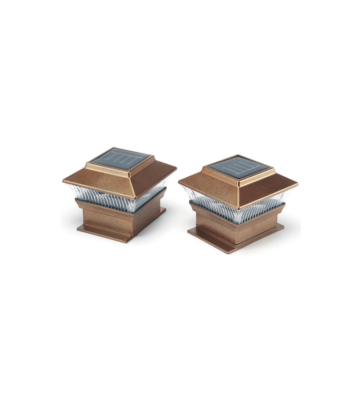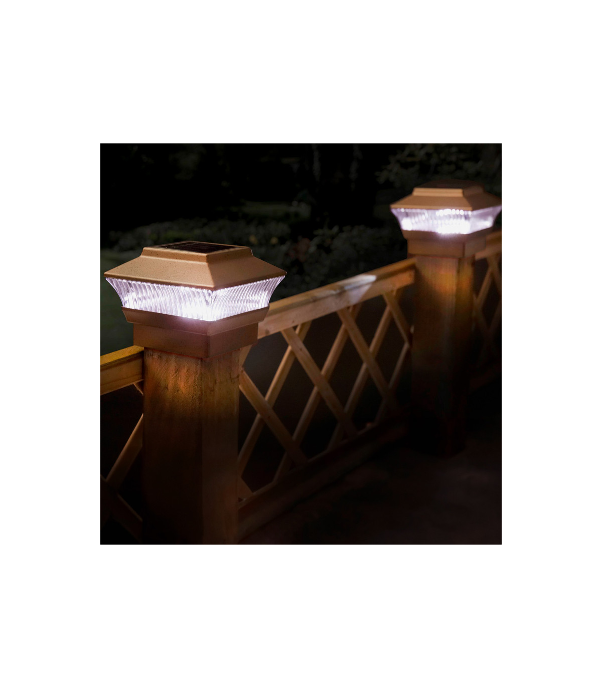 These Solar Post Lights give out a super bright light to illuminate your driveway, patio, fence or decking. The unique design will make them a great conversation piece for your outdoor gatherings. The energy efficient low maintenance post lights recharge each day and come on automatically at dusk. Fast and easy to install these Post lights will fit any standard 4" fence post but its clever design will also allow you to fit on to larger posts making them completely universal. Size: W14.5 x D14.5 x H11.8cm.