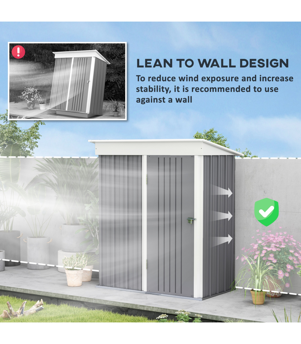 Small Garden Shed, Steel Lean-to Shed for Bike with Adjustable Shelf, Lock, 5x3