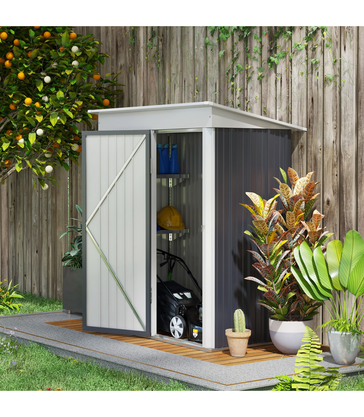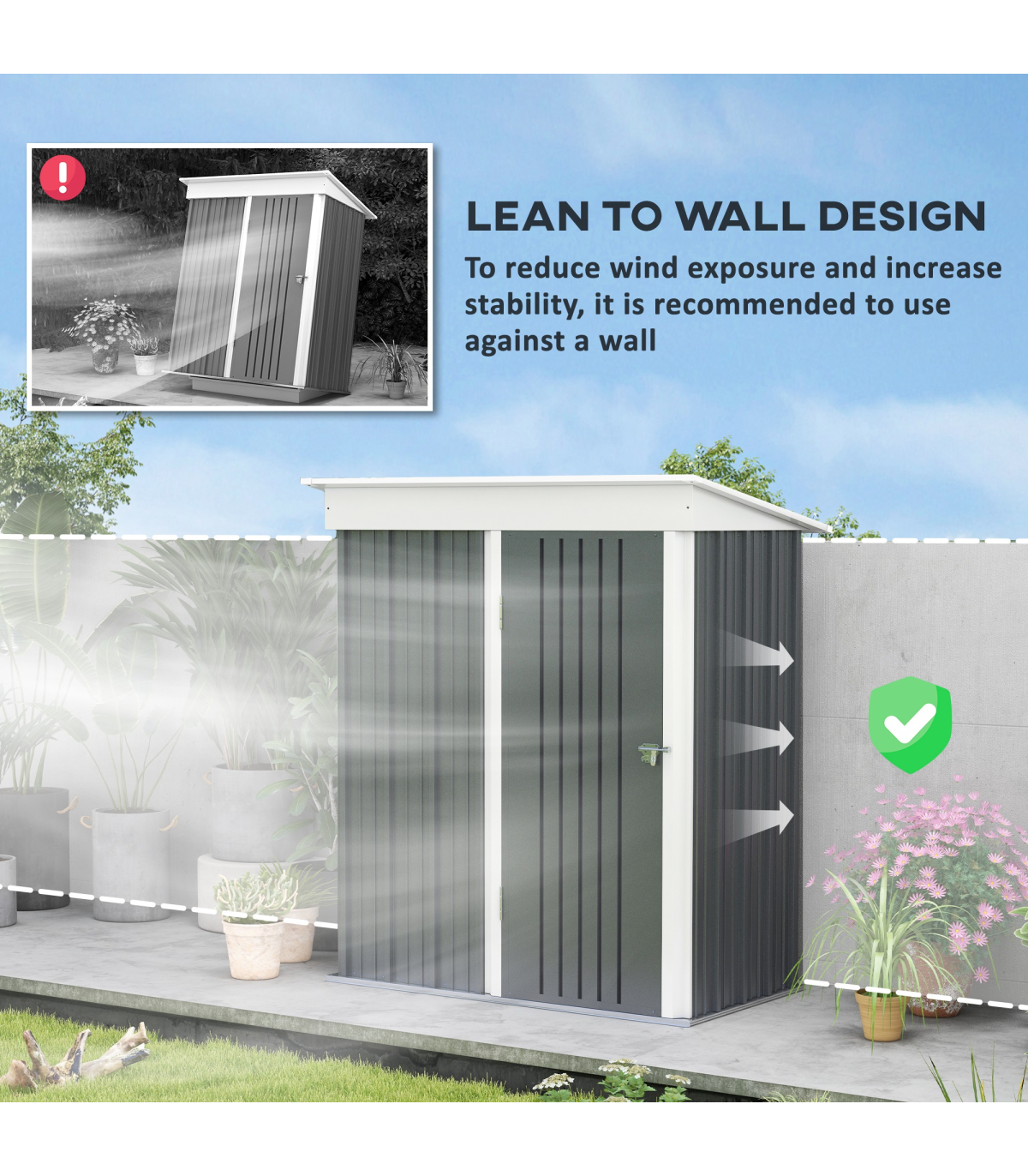 Small Garden Shed, Steel Lean-to Shed for Bike with Adjustable Shelf, Lock, 5x3