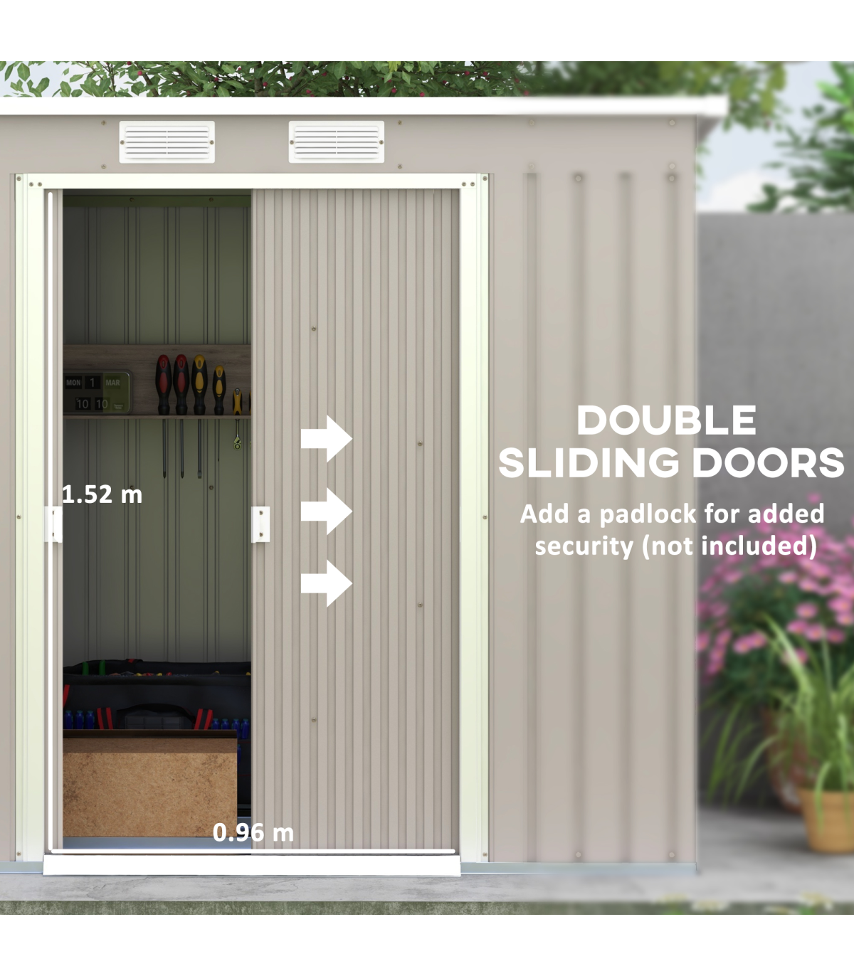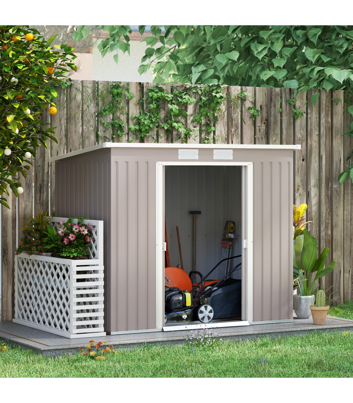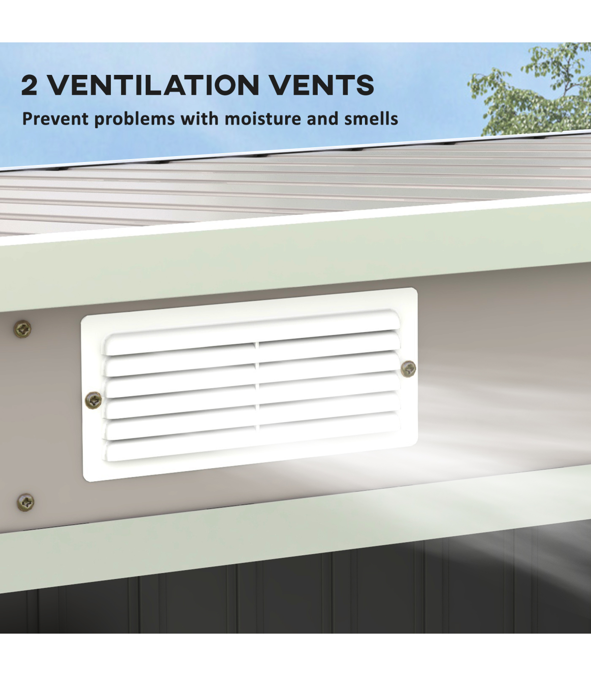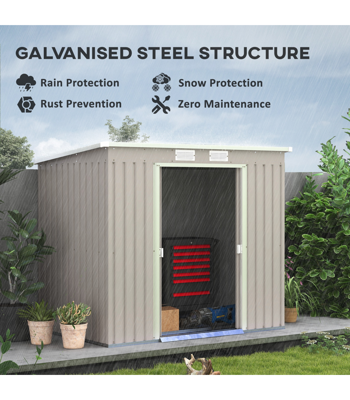 This galvanised shed from Outsunny is made of high-quality steel, which is durable, resistant to corrosion and will stand proudly in your garden. Our outdoor shed is fitted with an inclined steel roof to prevent water build-up, a double door for easy access this mobility scooter shed and two vents for air flow inside to prevent mould, mildew and humidity build-up. This pent shed is an all-round fantastic solution for storing your outdoor equipment and tools.