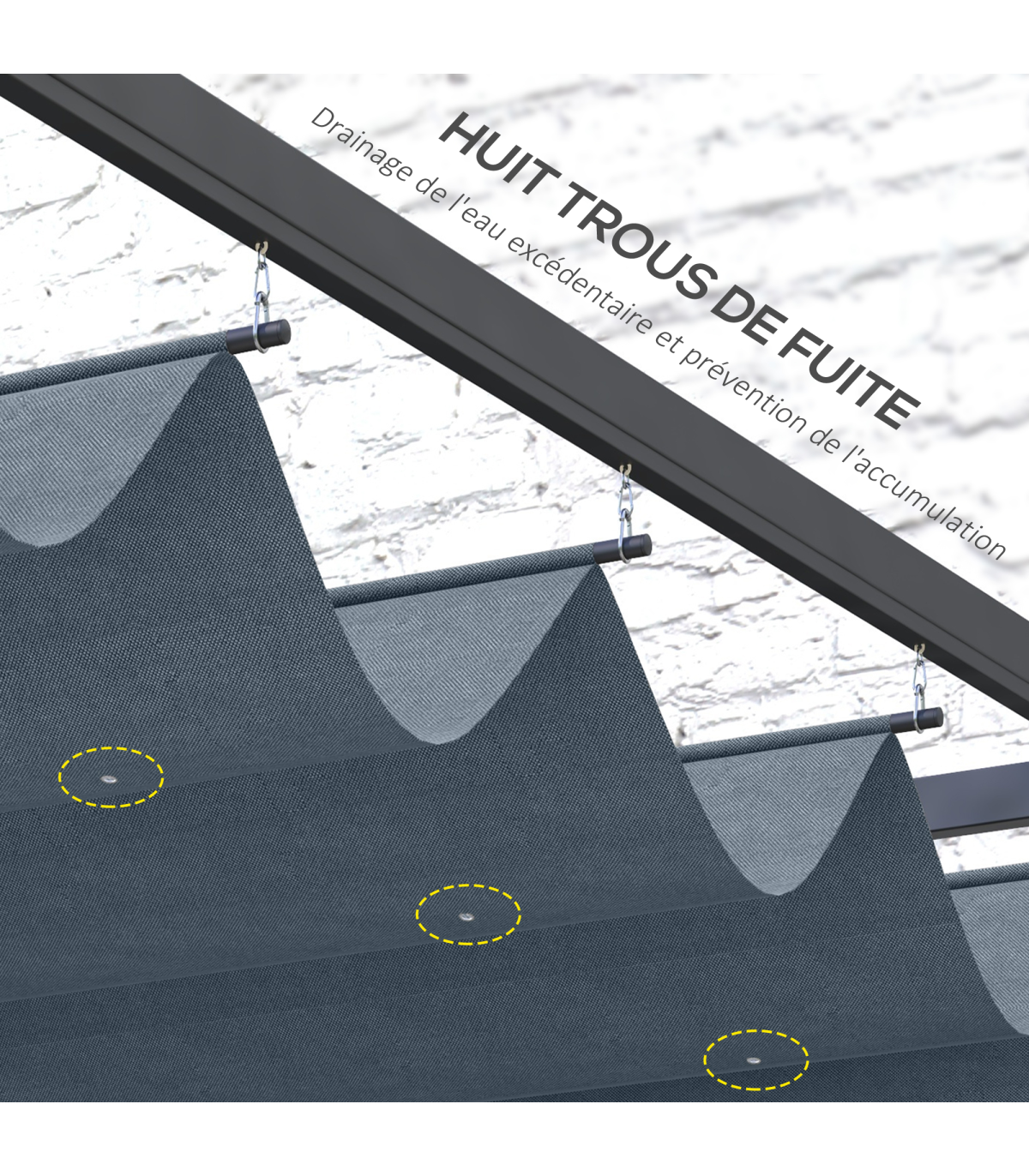 Bring your pergola back to life instantly - do it with this Outsunny replacement top. Polyester fabric makes it durable for lasting use, with a UV-resistant PU coating to protect you underneath for protection. Easy to attach - simply fit the holes onto your pergola frame rods. Eight drainage holes to prevent water build-up. Only for Outsunny sku 84C-175.