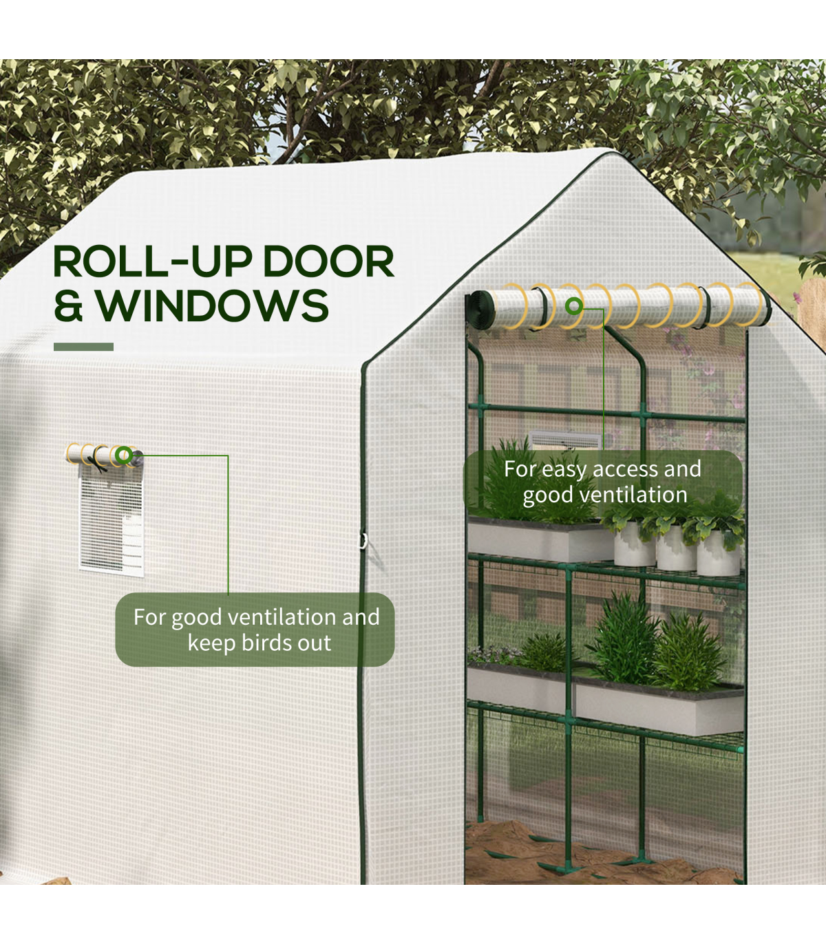 Outsunny Walk-in Outdoor Green House with Door and Mesh Windows, White