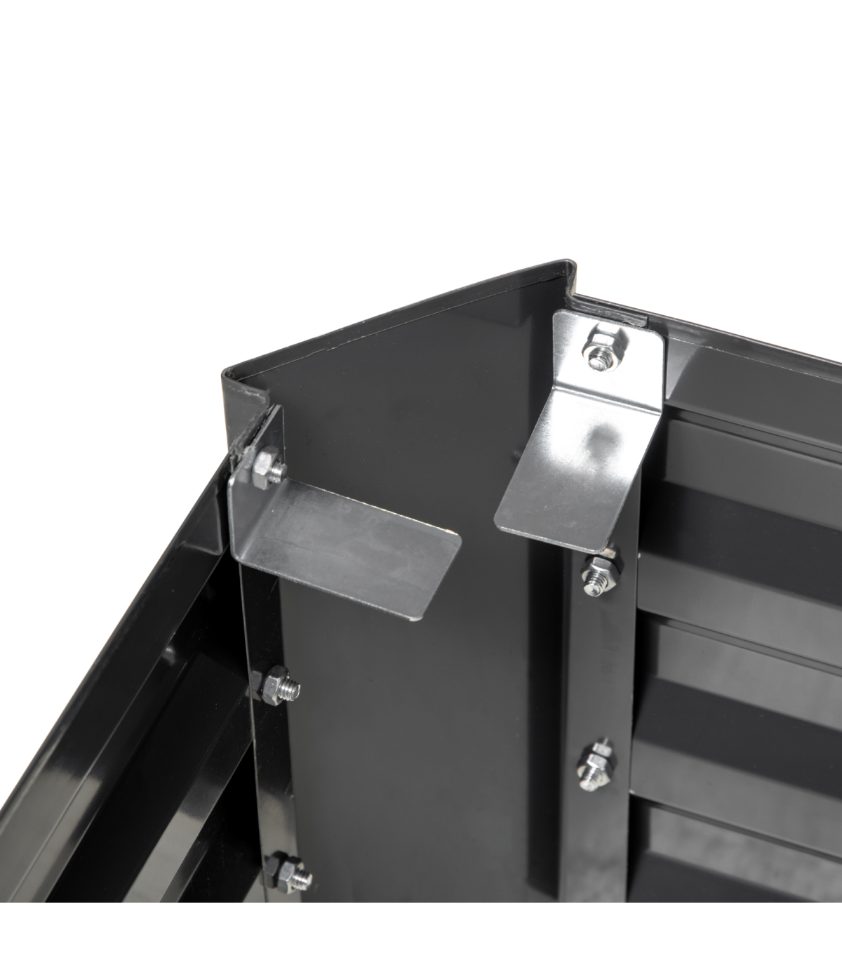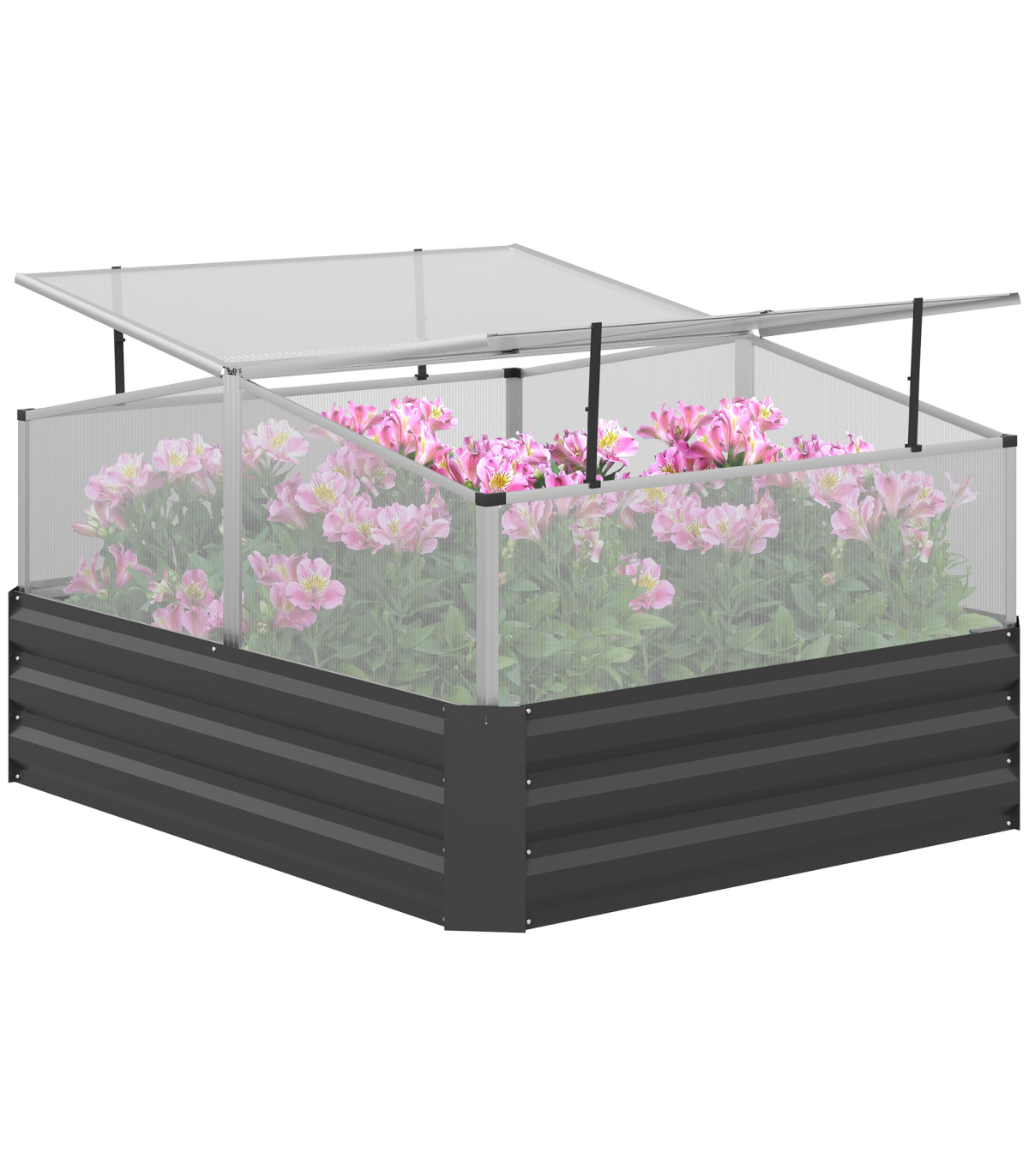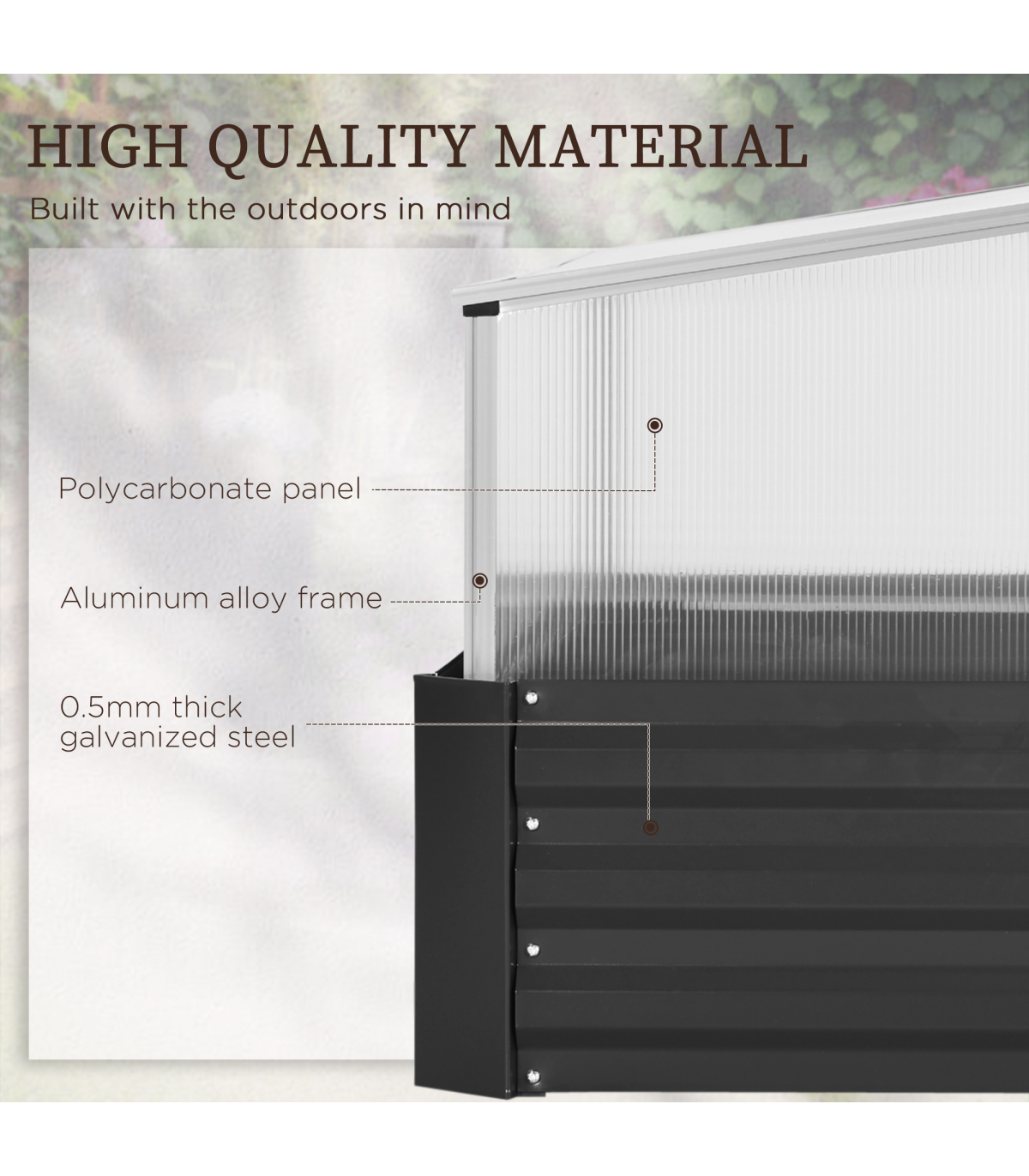 Two-part design: steel base with polycarbonate roof. Use together or separate