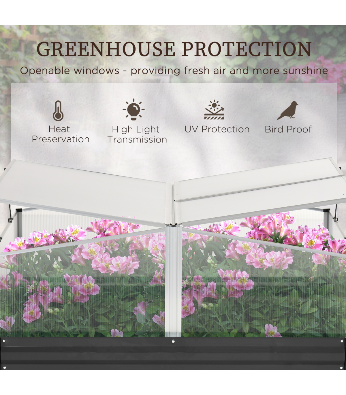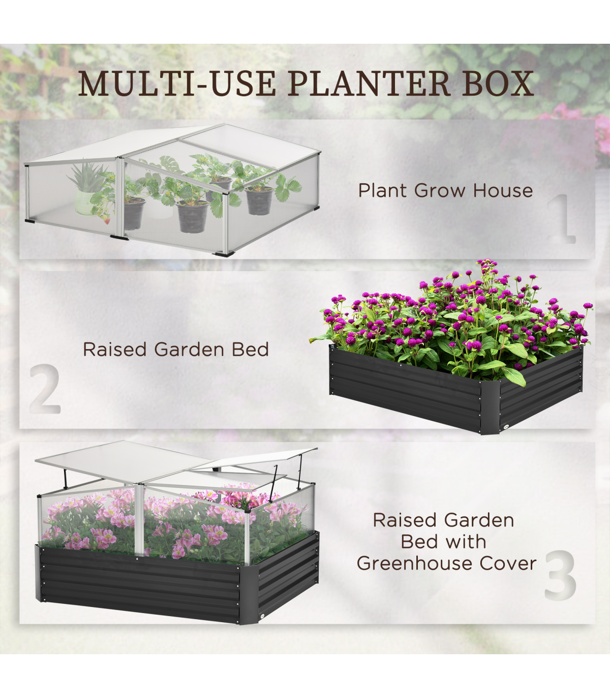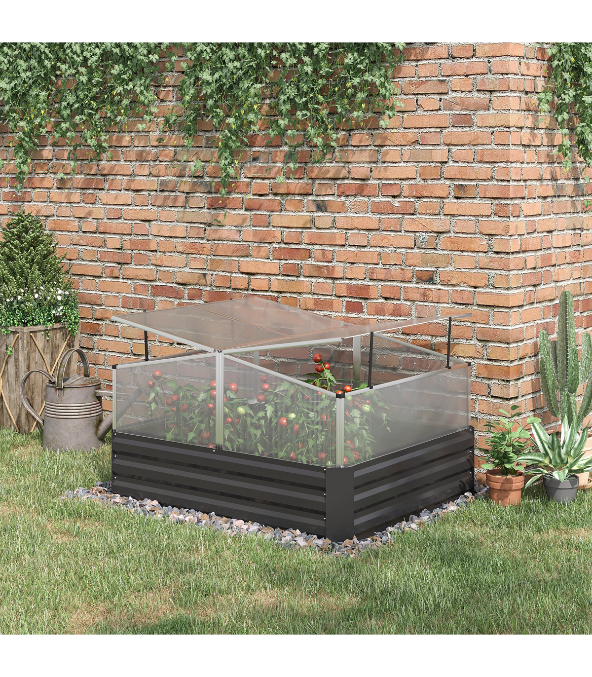 Two-part design: steel base with polycarbonate roof. Use together or separate