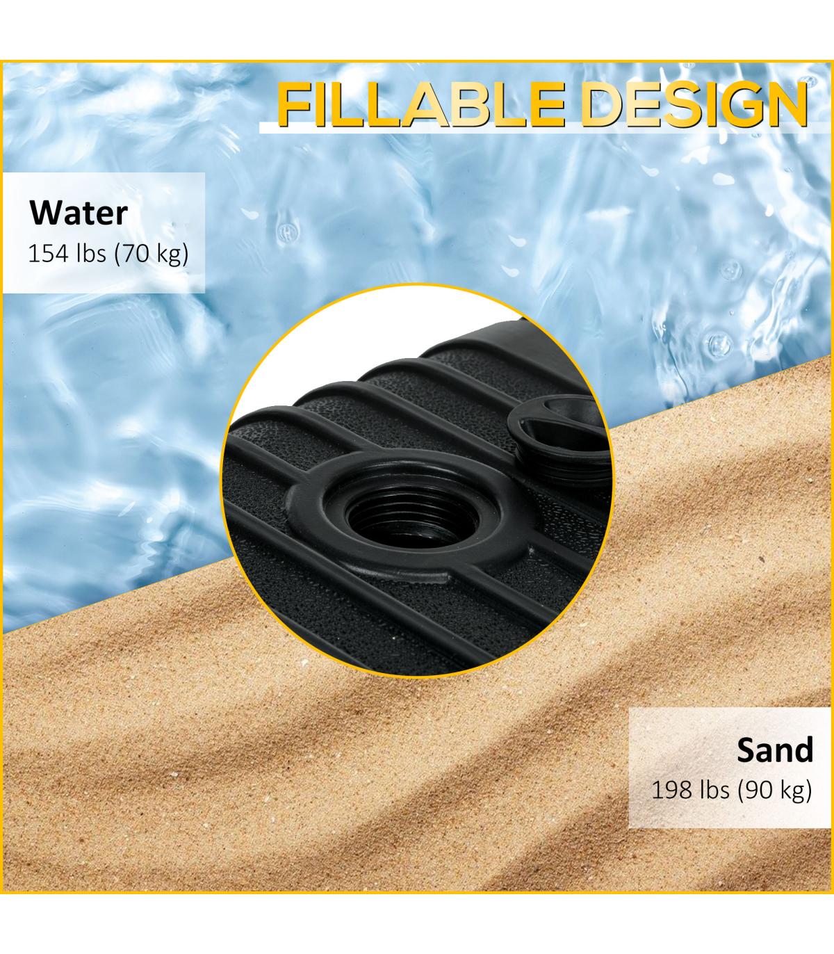 ● Fillable design: 70kg water/90kg sand, with filling port and drainage hole