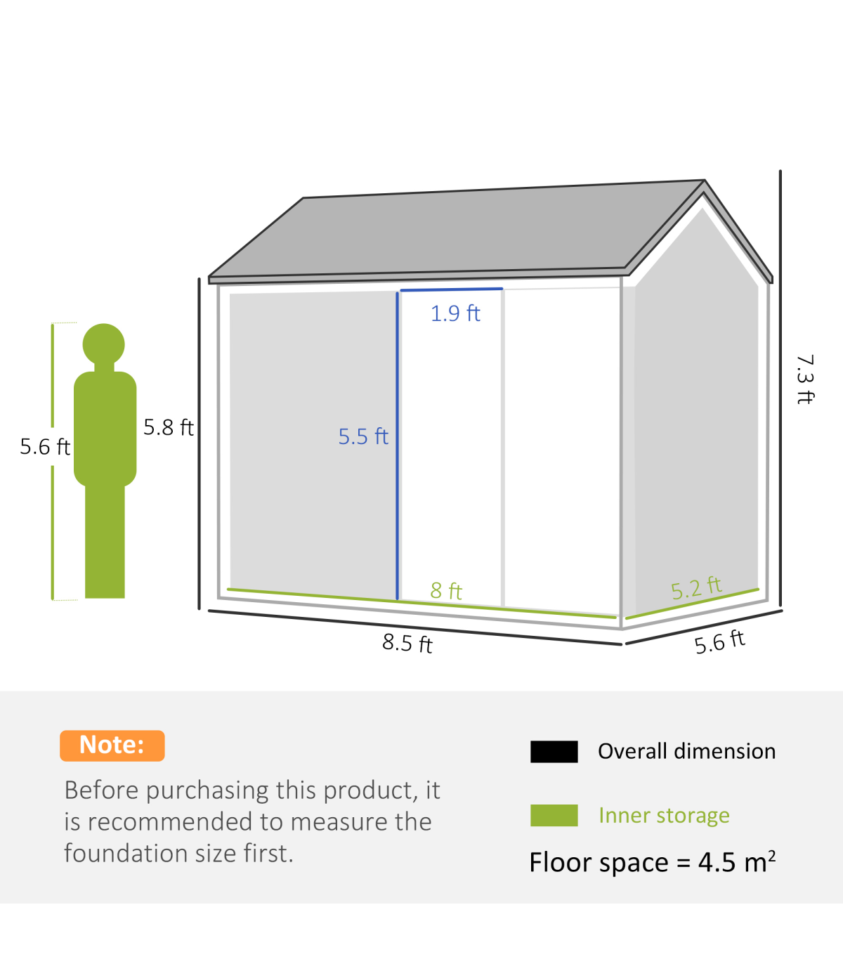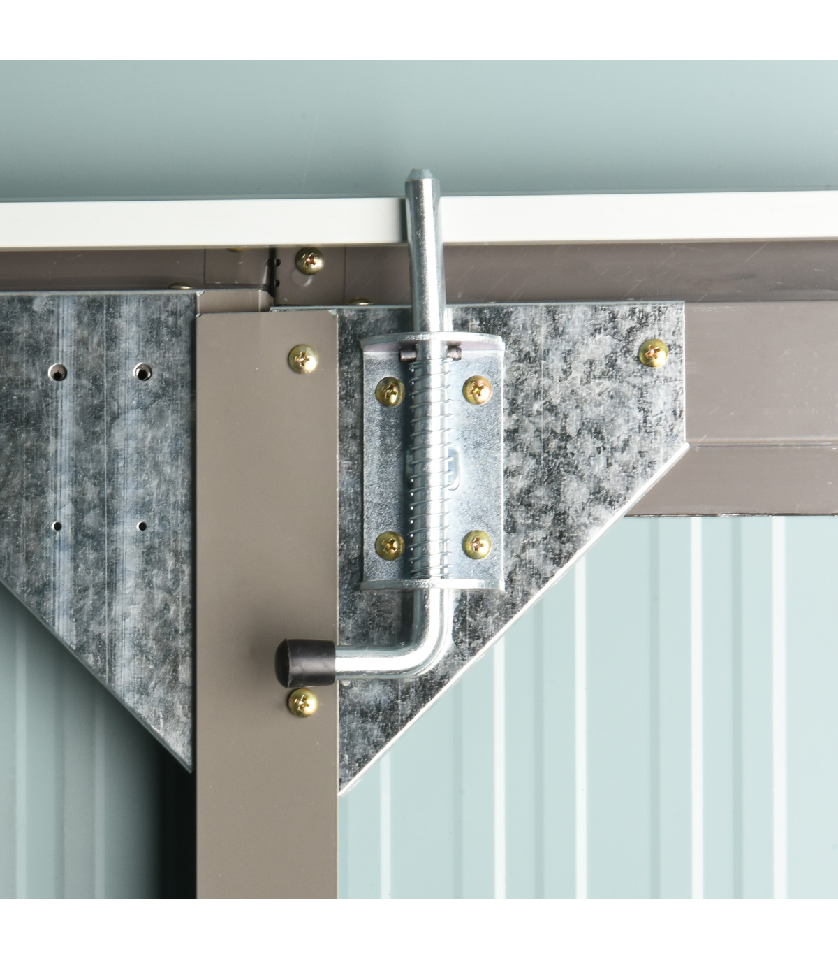 complete with a latch lock for security. Floor foundation NOT included with this garden shed.