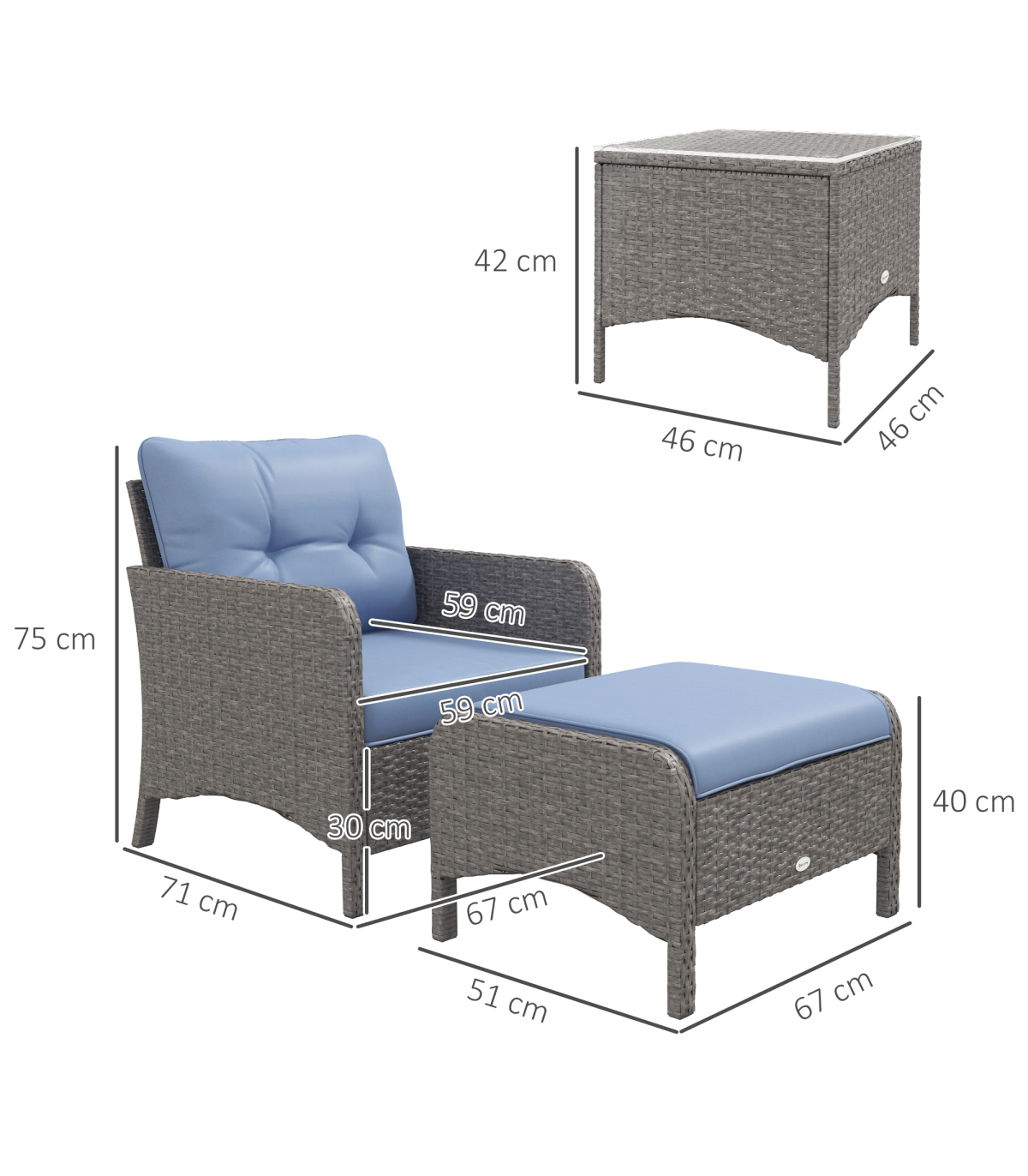 ● Weight Capacity: 160kg (armchair), 70kg (ottoman), 30kg (table)