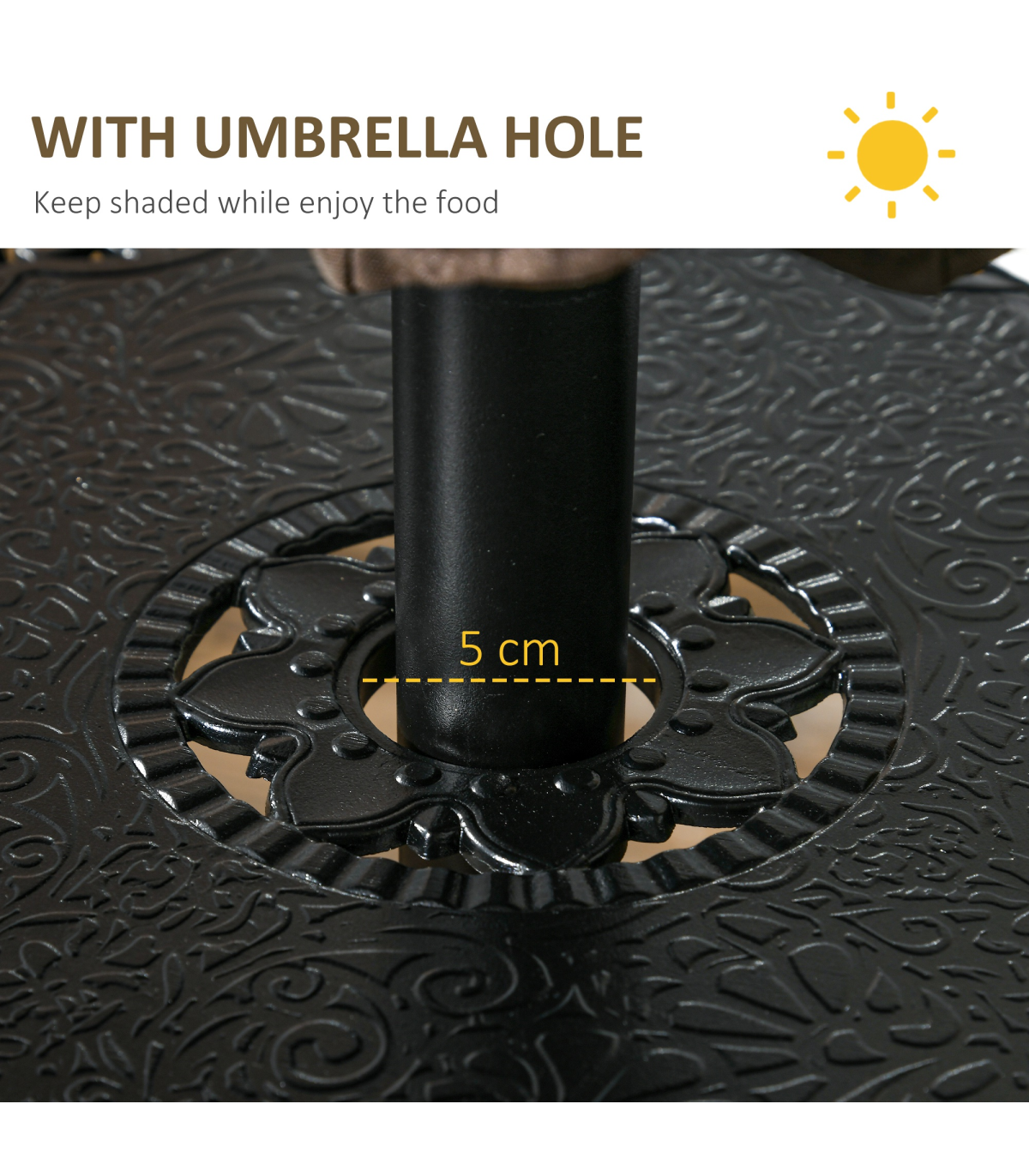 ● 50mm umbrella hole in the centre of the table