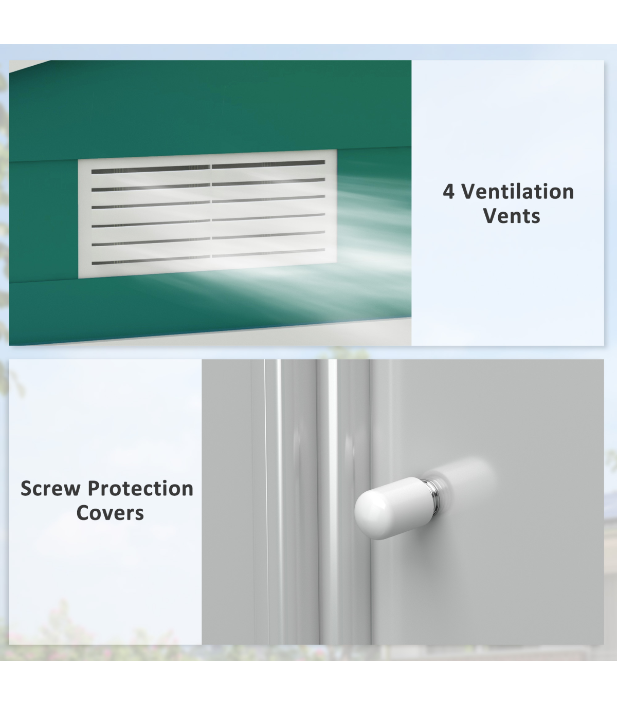 ● Sloped roof helps prevent water build-up: prevents surface damage and rusting