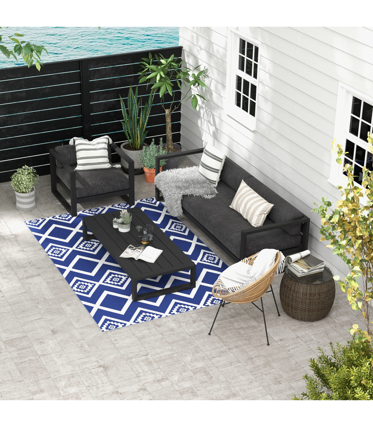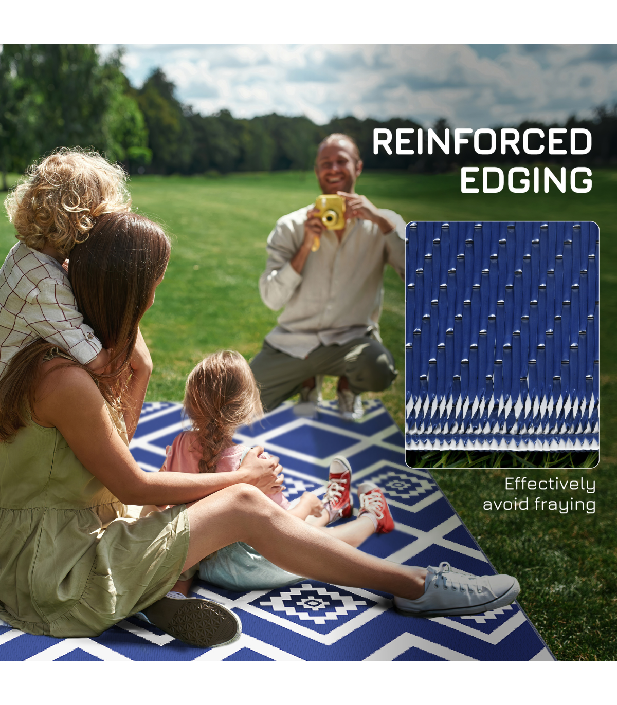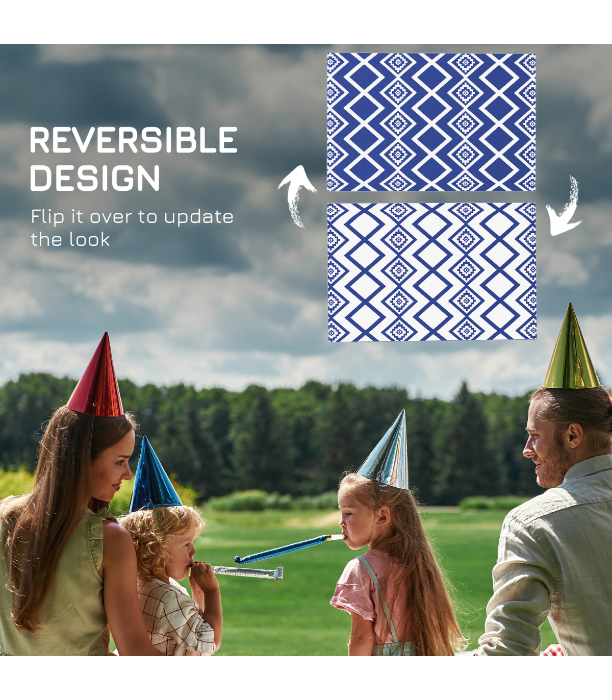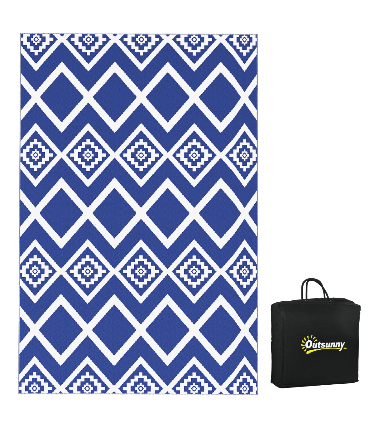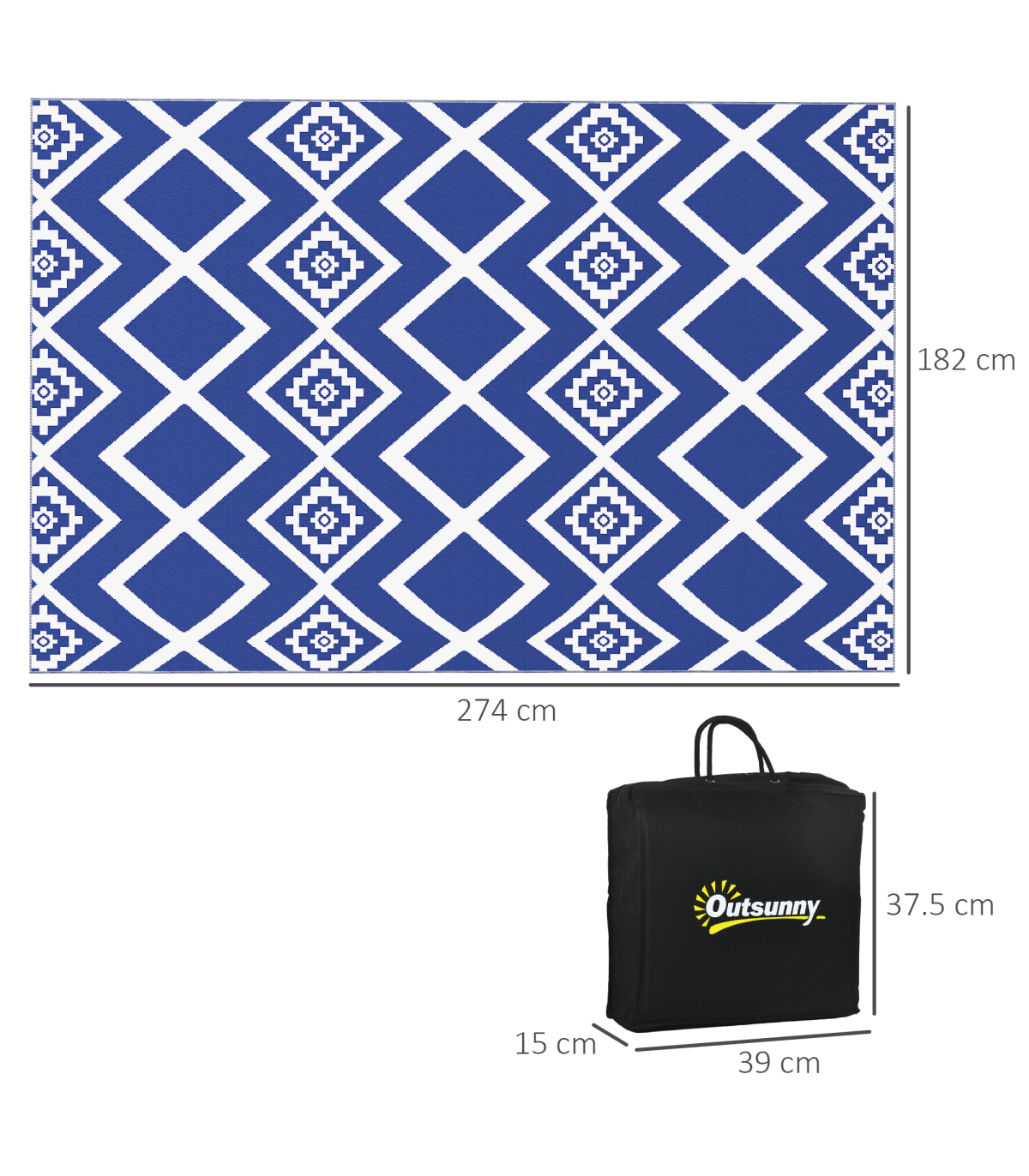 Outsunny Reversible Waterproof Outdoor Rug with Carry Bag, 182 x 274cm, Blue