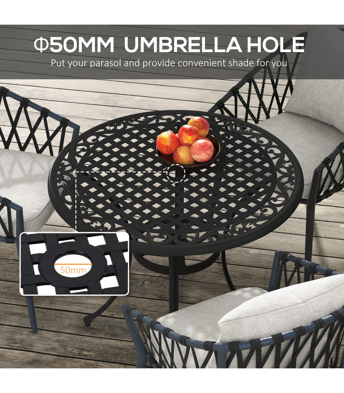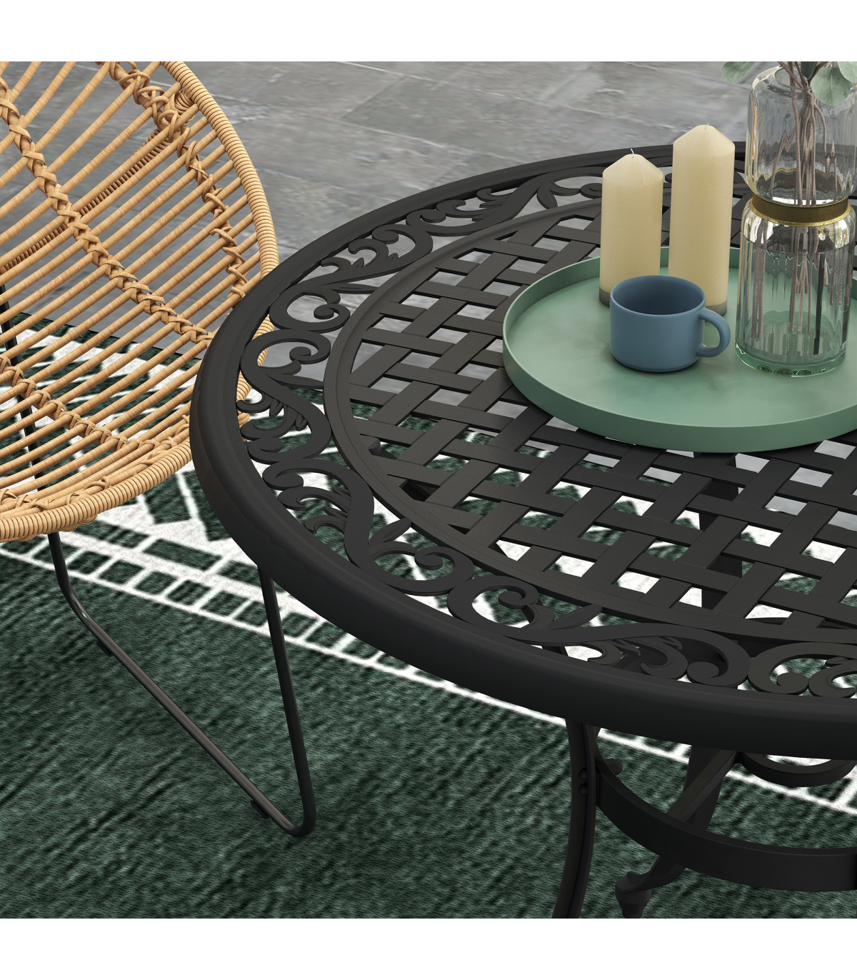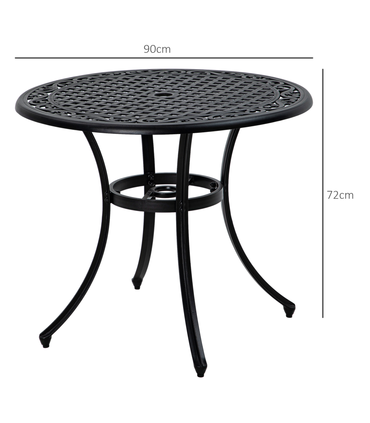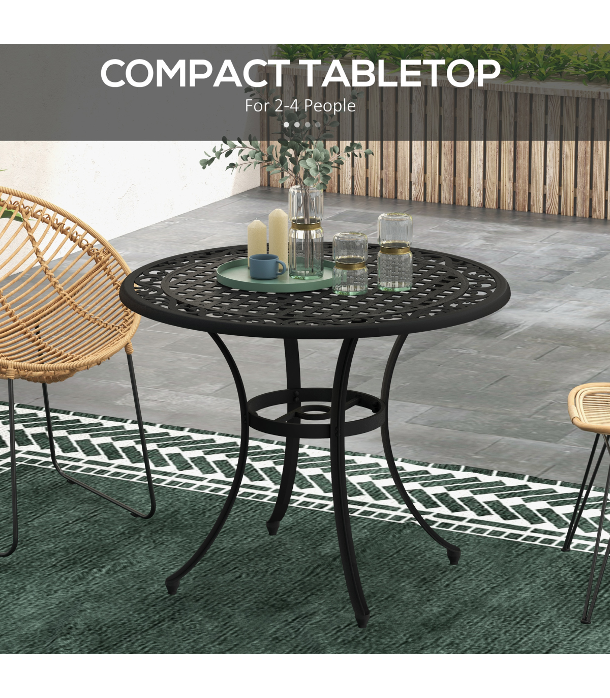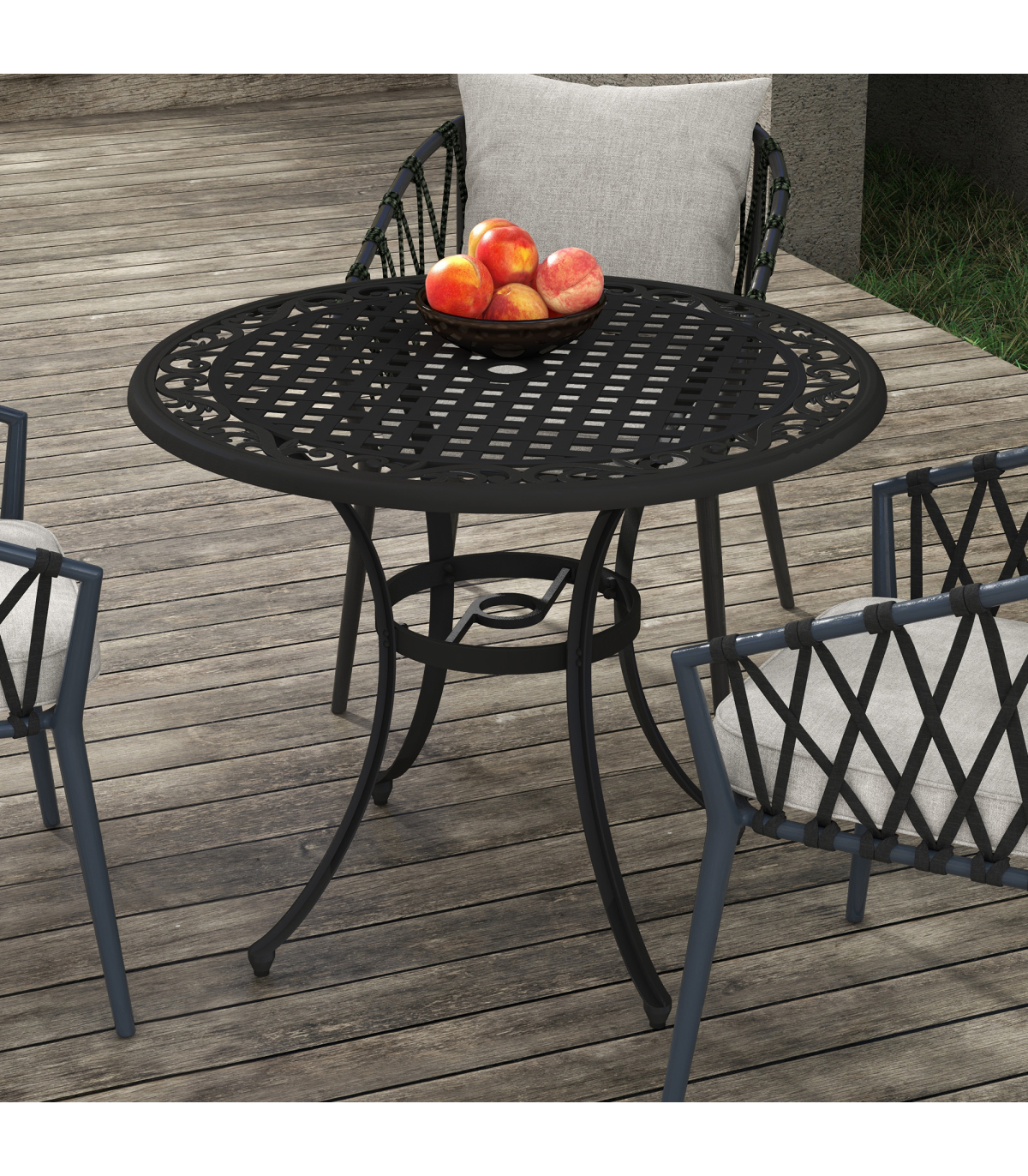 ? A round patio table with ?90 cm tabletop seats two to four persons