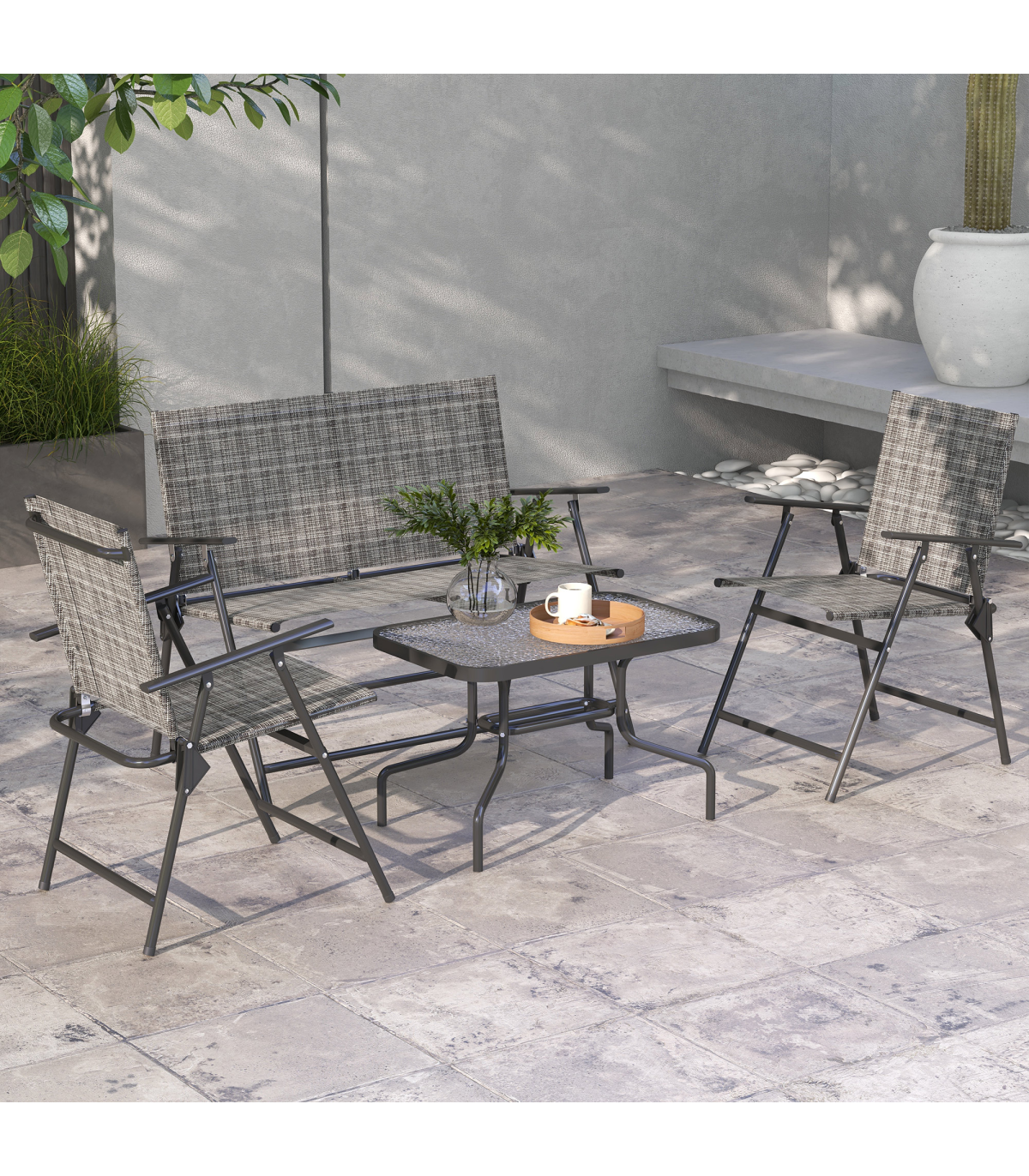 Outsunny Patio Furniture Set, Garden Set with Table, Foldable Chairs, and a Loveseat"