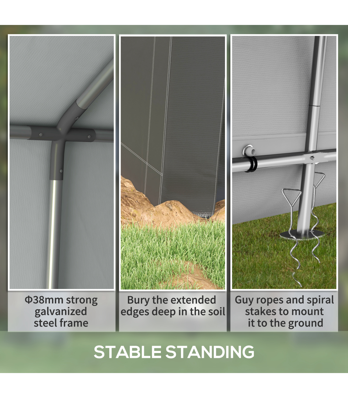 ? Extended edges and stakes mount it to the ground