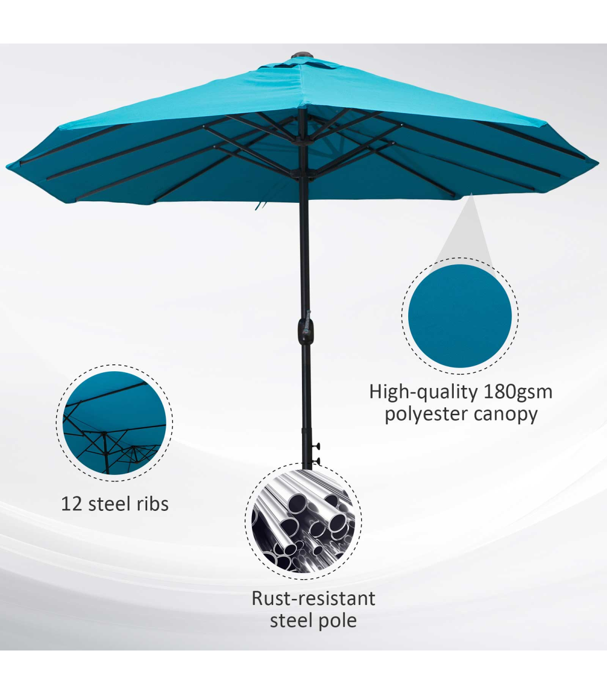 ? 12 ribs connecting pole and canopy for added support