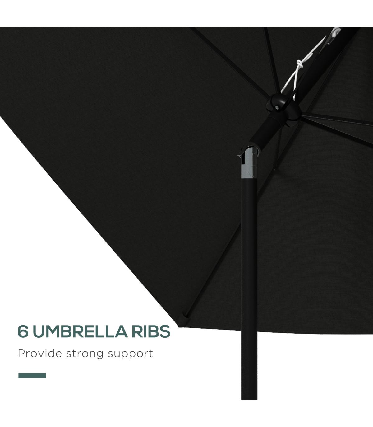 ? Powder coated aluminium pole is strong, six ribs supporting the canopy
