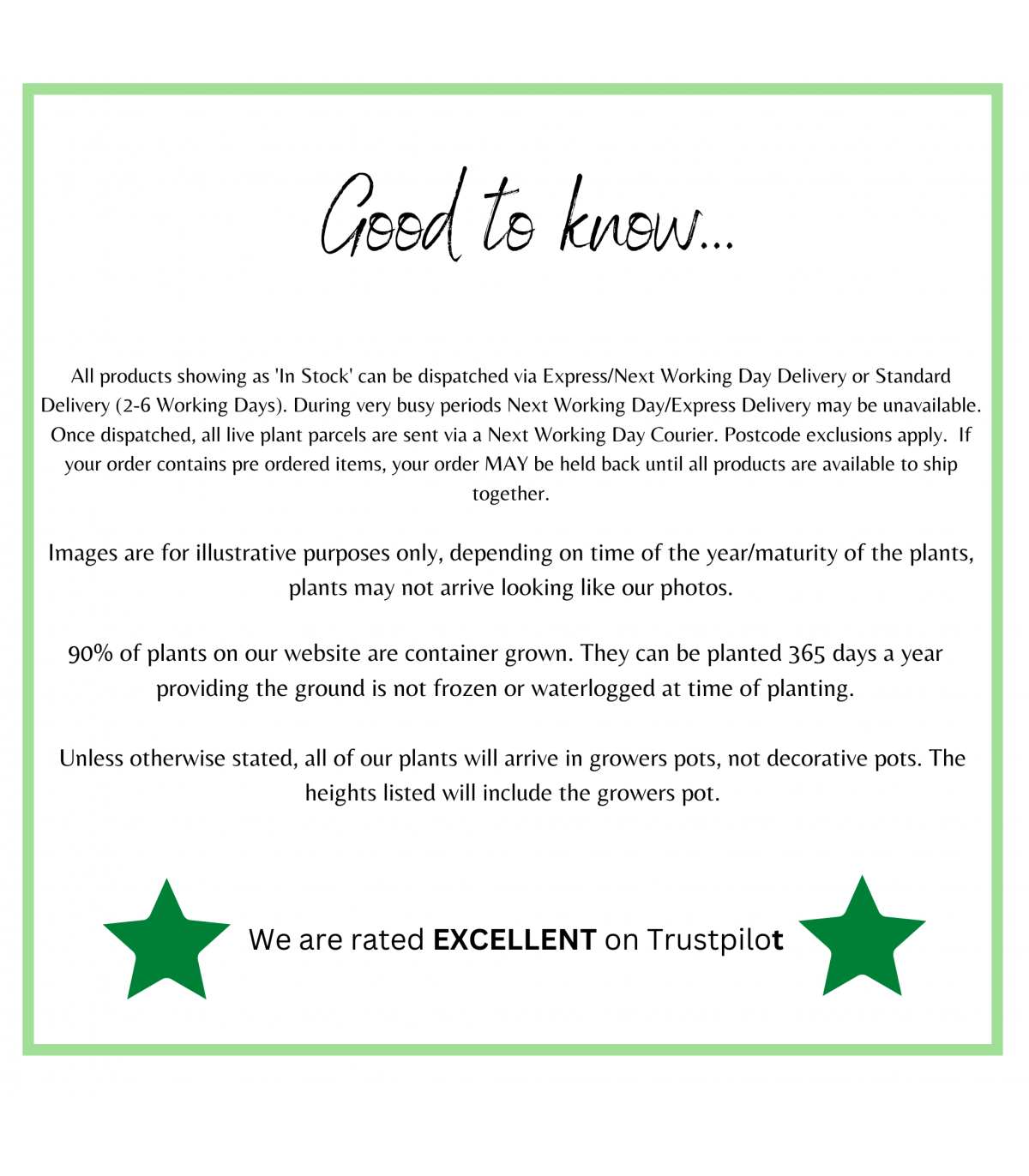 ✓ Supplied at a height of 50-60cm (Including Growers Pot). 3L Growers Pot