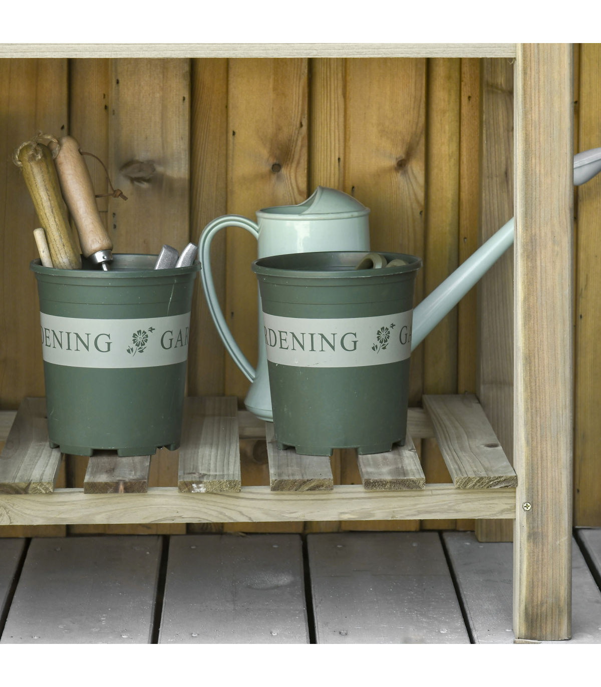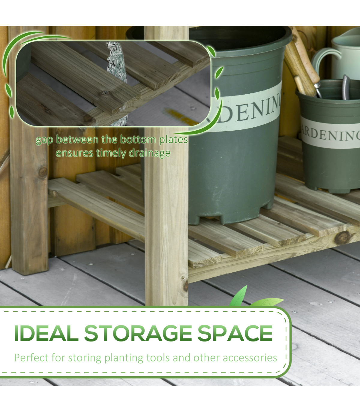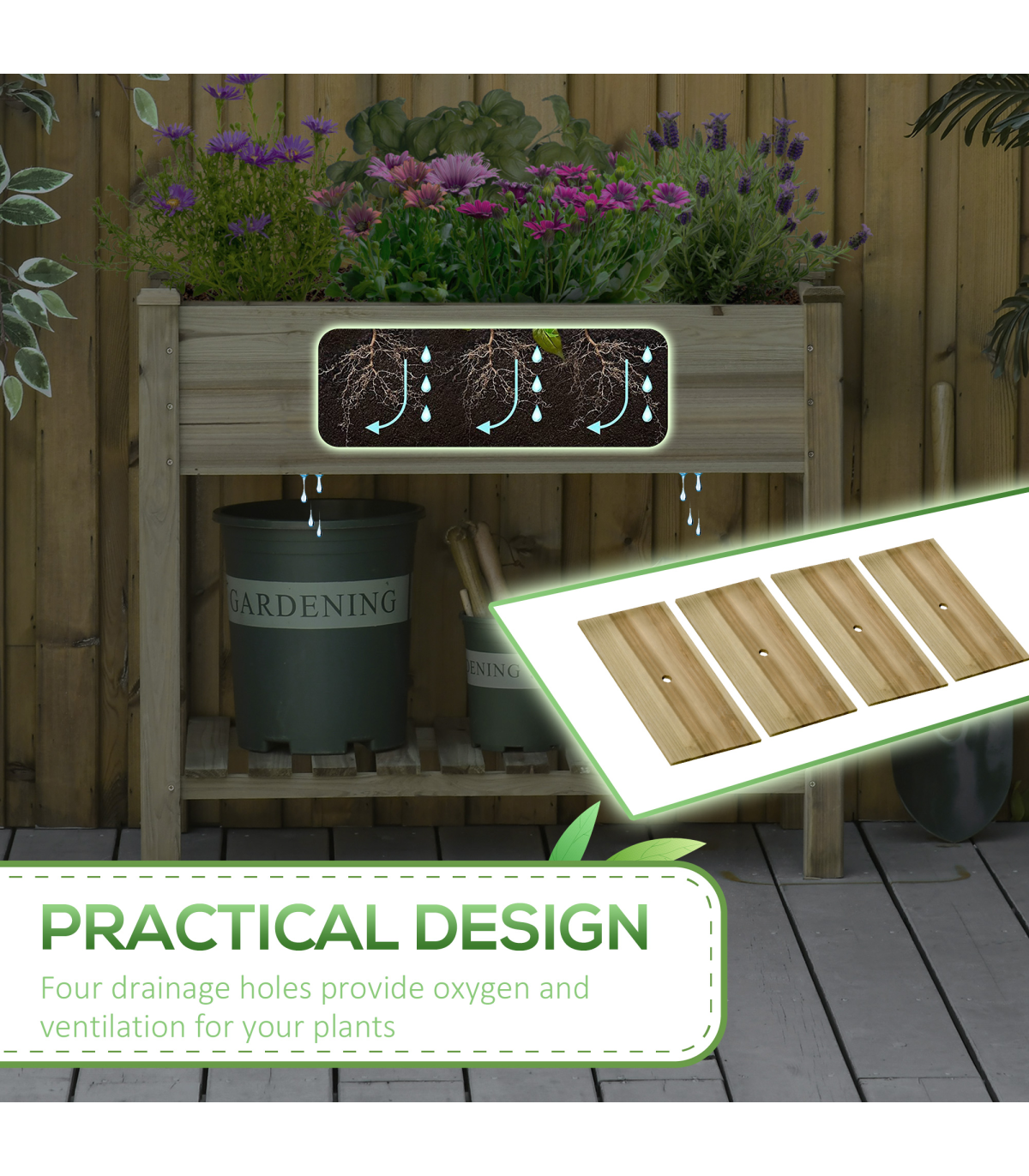 Would you like to add a beautiful view to your garden? This thoughtfully designed standing planter can do it. This wooden planer from Outsunny has a simple appearance, but it's very practical. Made with solid wood, stable and durable. No more bending over to take care of your plants. The lower layer of storage allows you to load buckets, tools, or other items. Create your planting landscape and showcase your plants proudly with this charming planter.