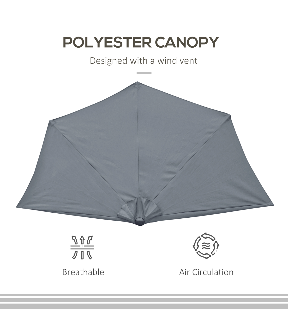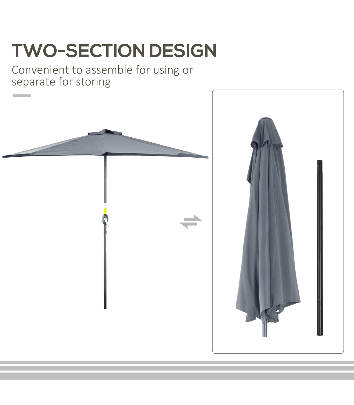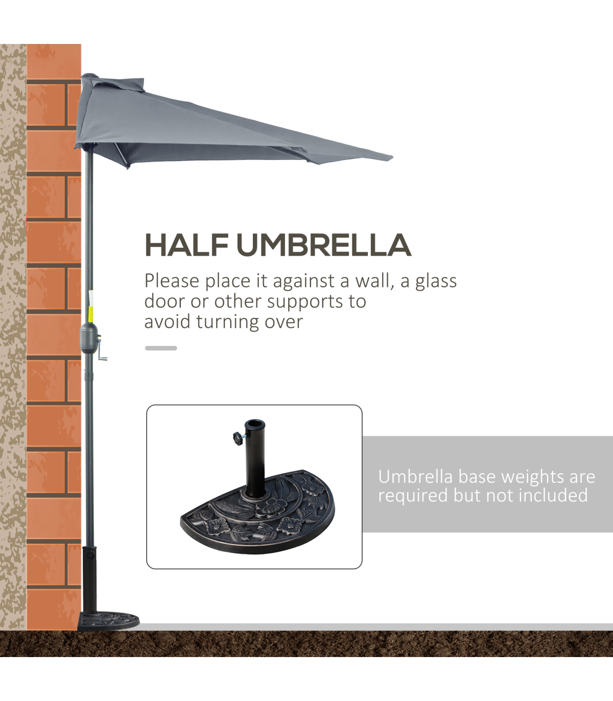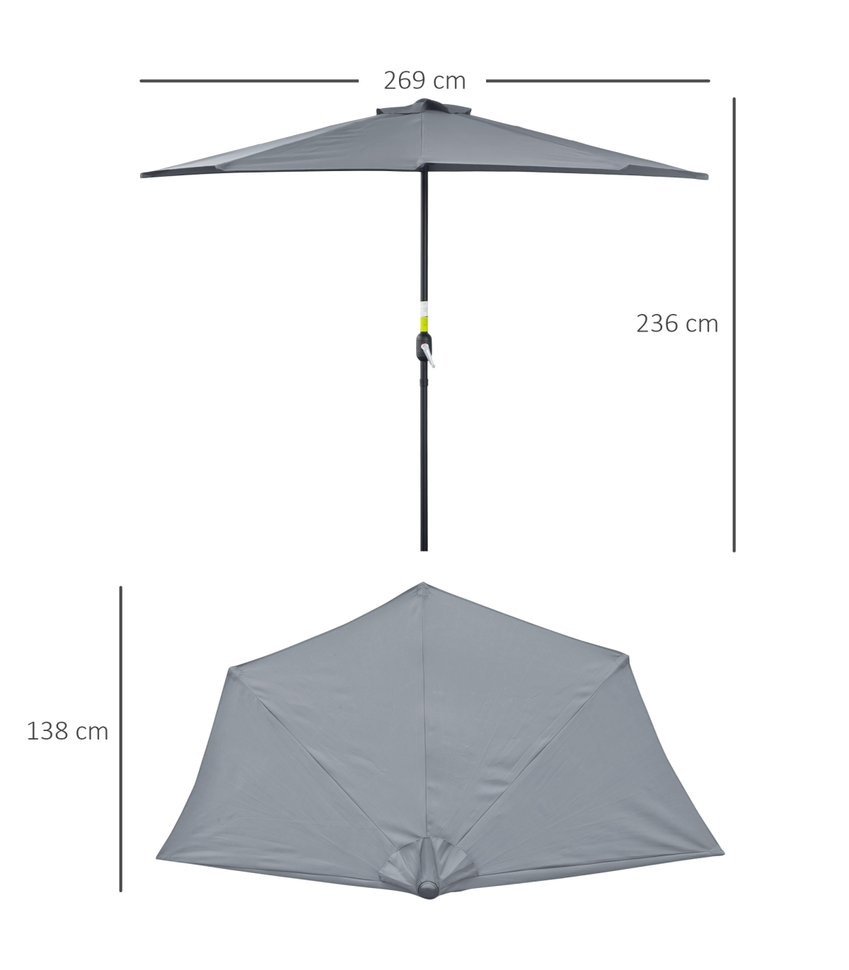 Half Round Umbrella Outdoor Balcony Parasol Wall Sun Shade 5 Ribs Grey, 2.7m