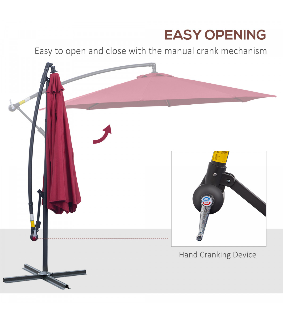 3m Banana Hanging Umbrella Garden Parasol-Red