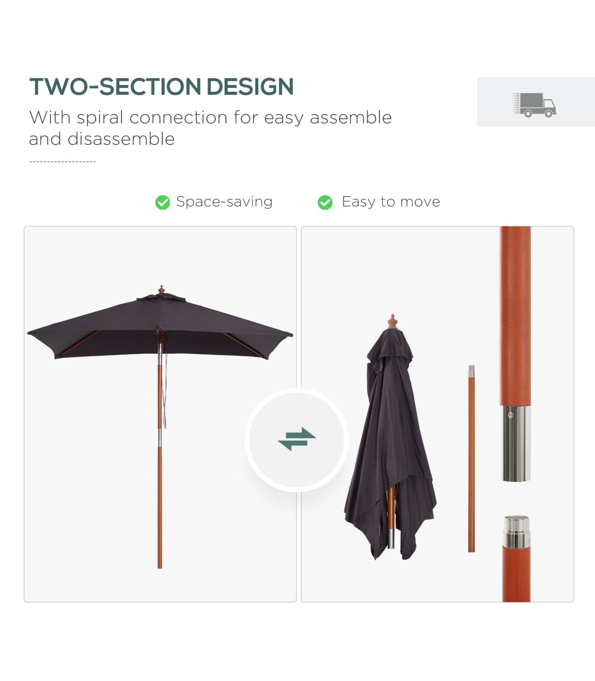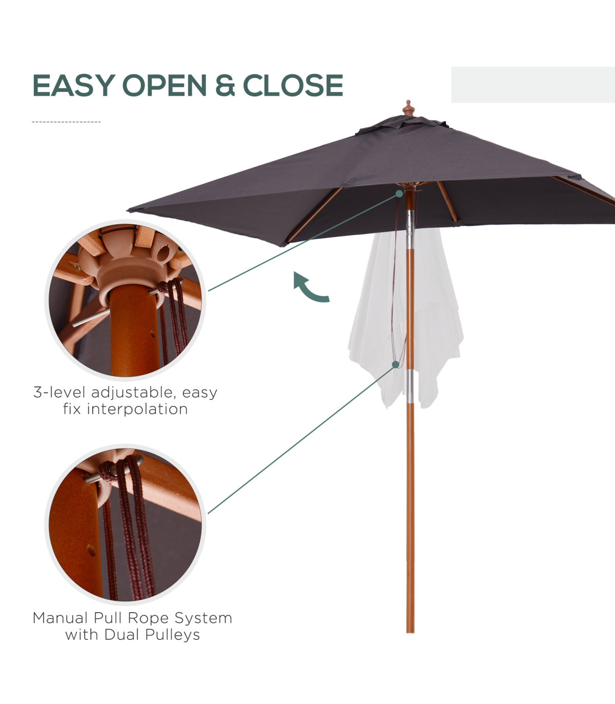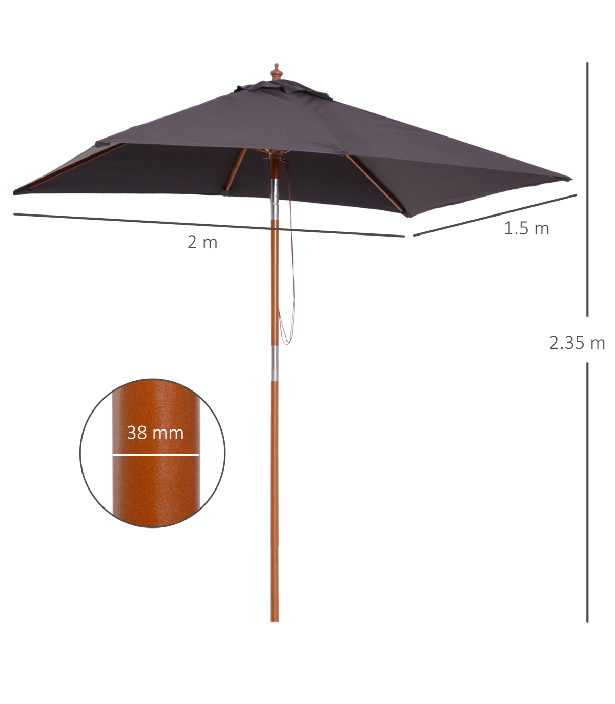 - Solid fir wood central pole for a tough structure which keeps upright all day long
