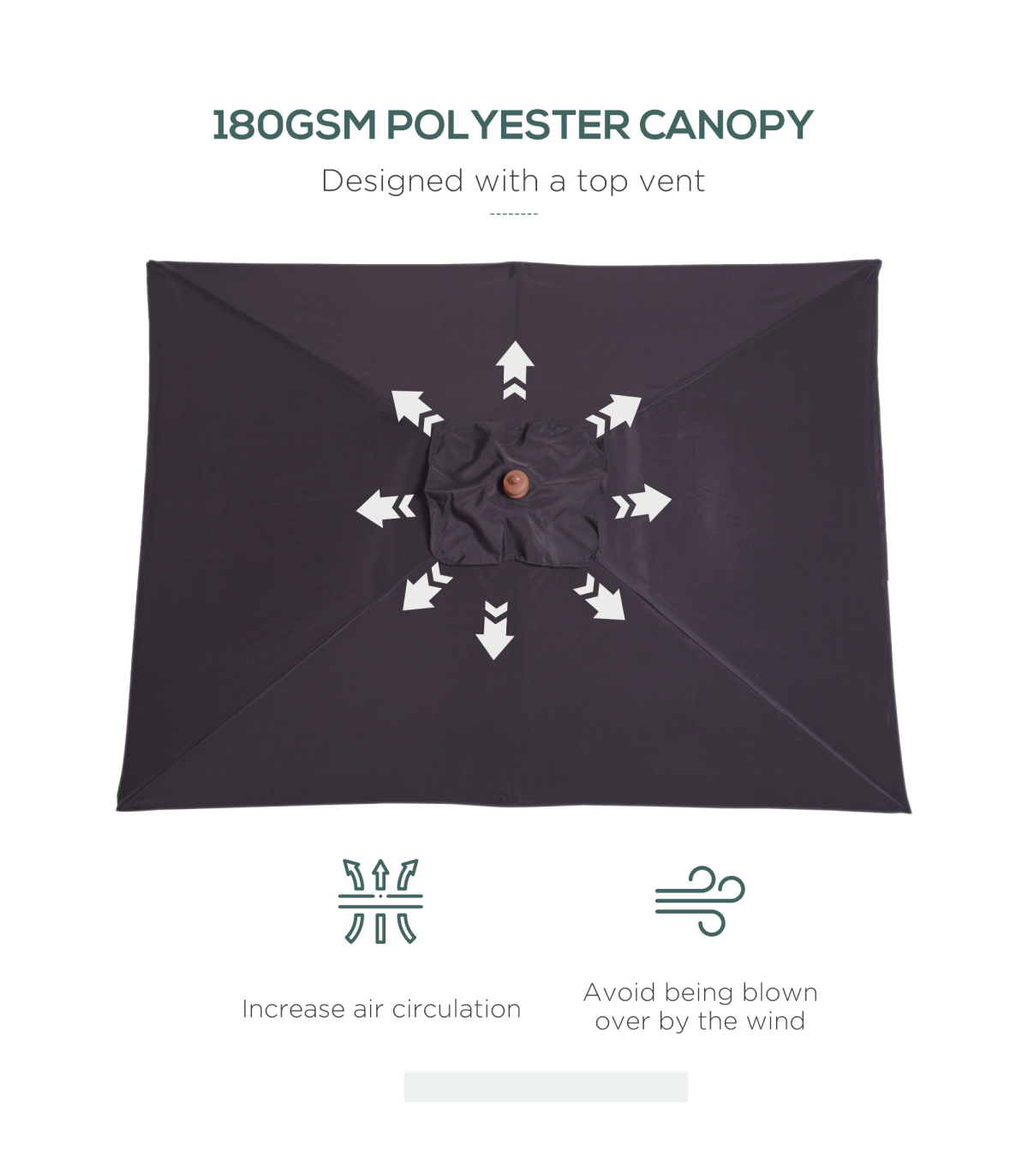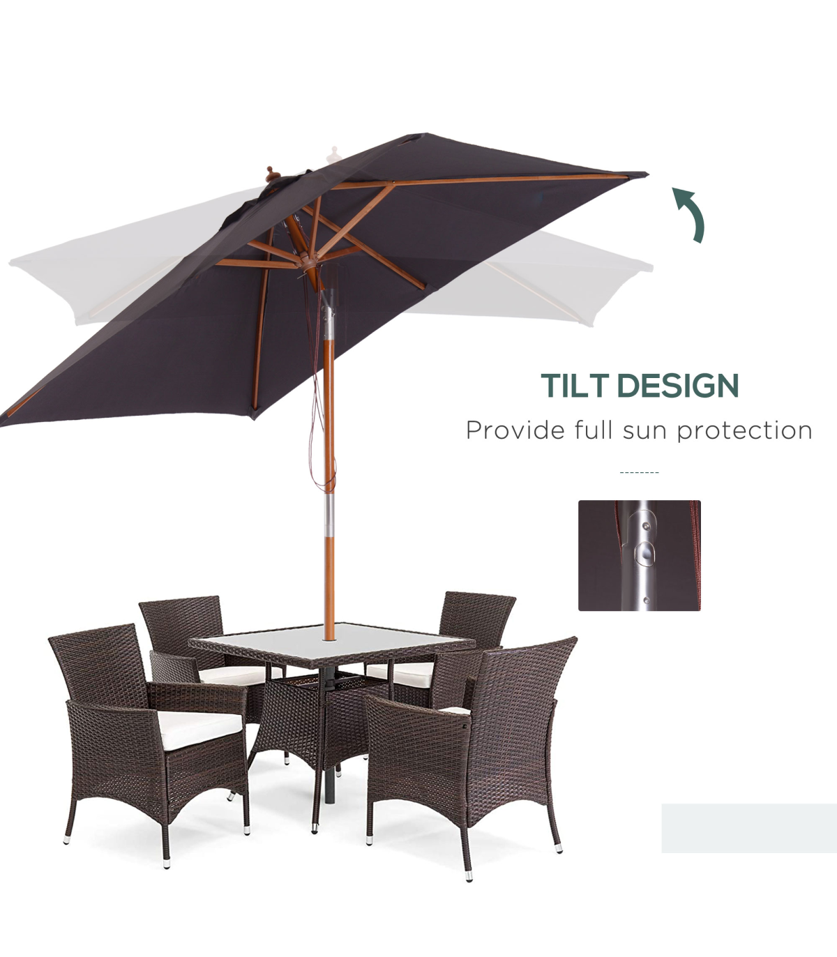 Protect yourself outdoors in ultimate style with this sun umbrella for garden from Outsunny. On the garden parasol umbrella top, a large square canopy sits. Made from 180g polyester to provide sun protection, you can adjust the deck parasol angle to set to a position which is best for you, with eight bamboo ribs for extra support between the frame and canopy. It's finished with a pull rope for easy opening and closing. This sun parasol is the perfect blend of beauty and function.
