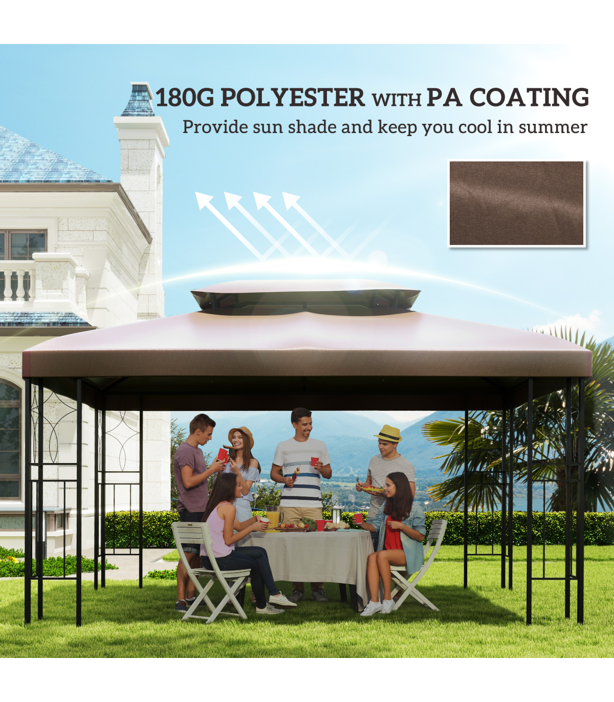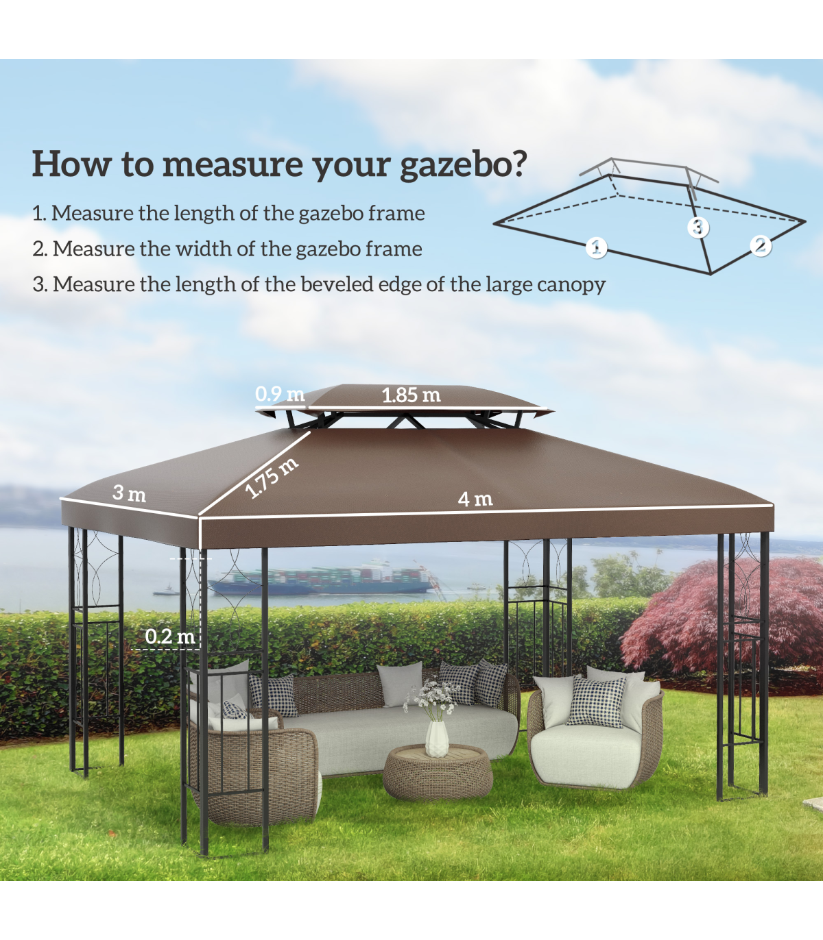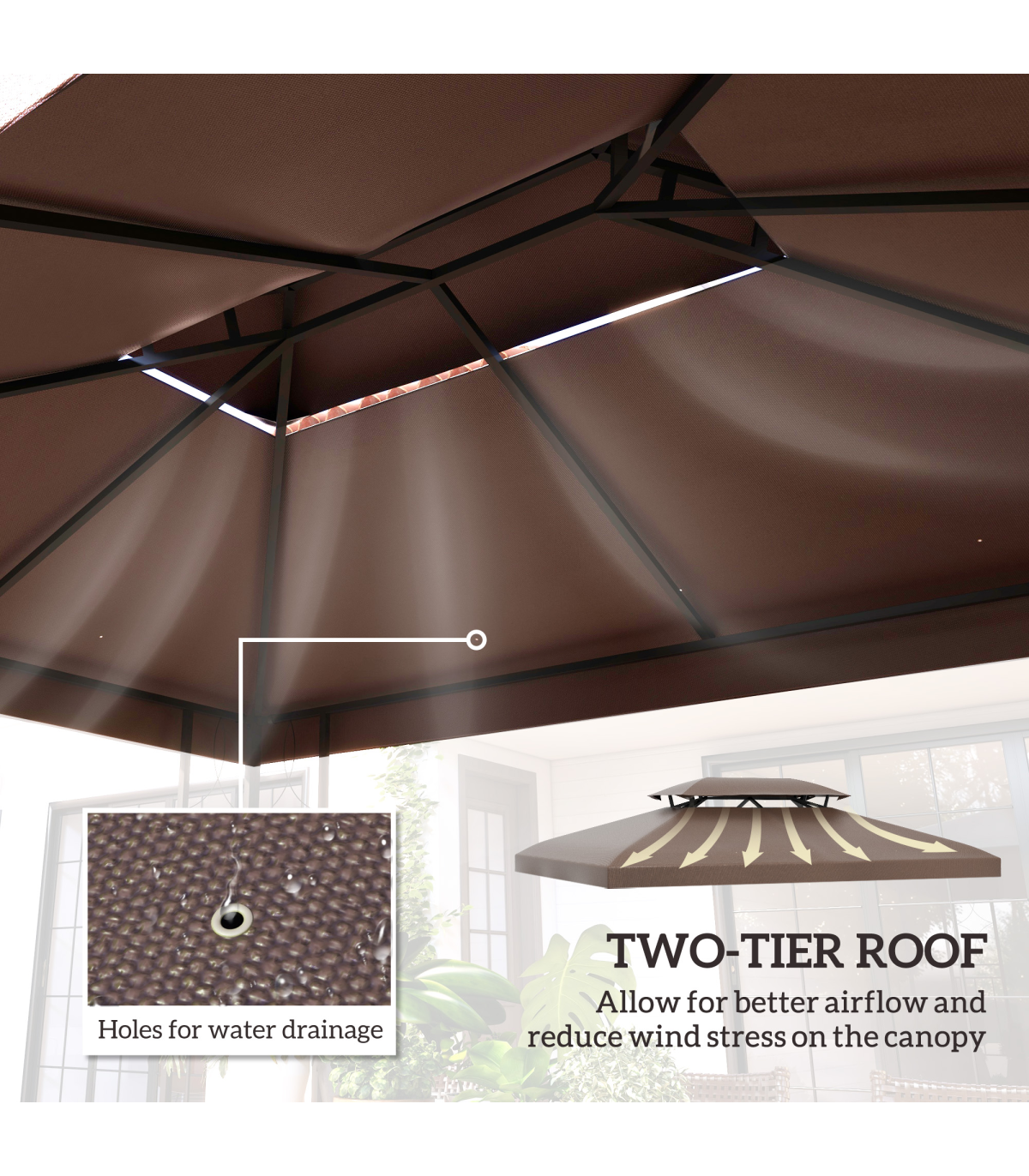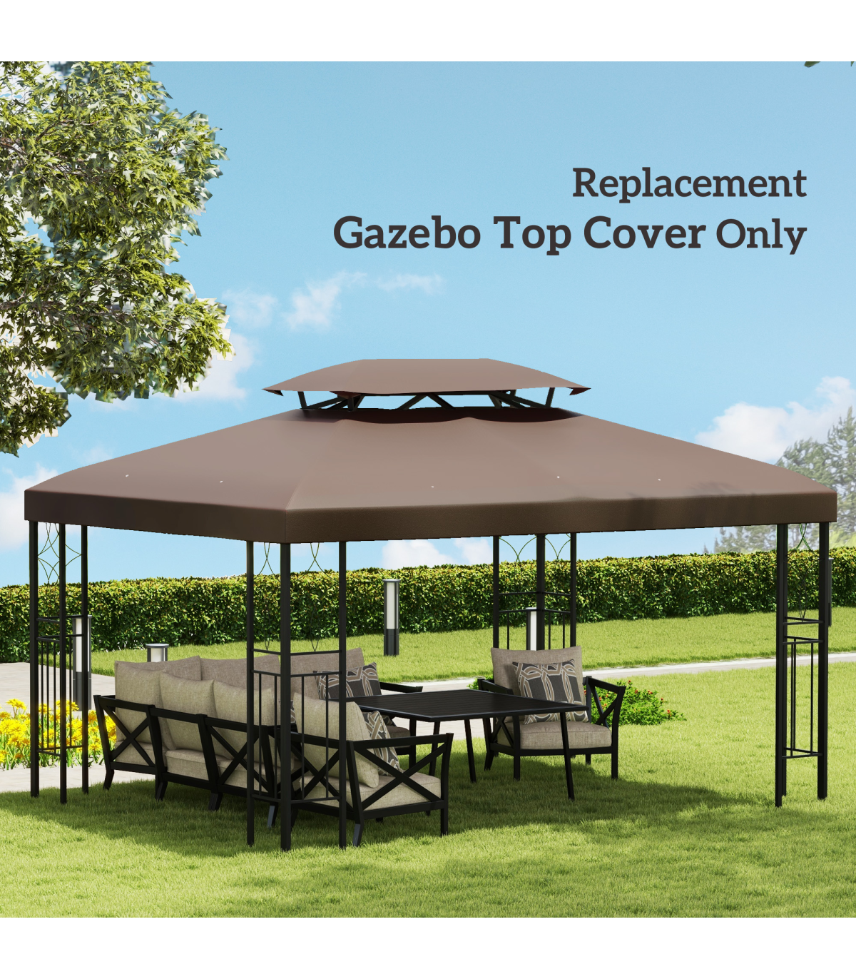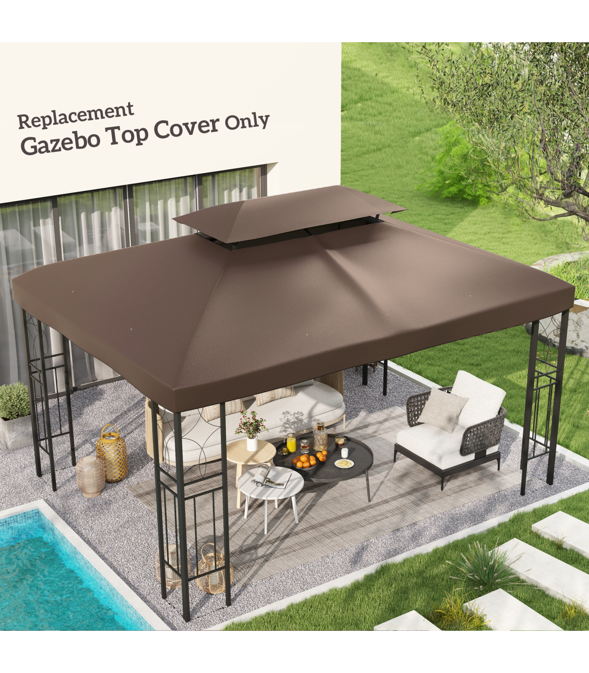 Gazebo Replacement Top Cover, 2-Tier, 3x4 m-Brown