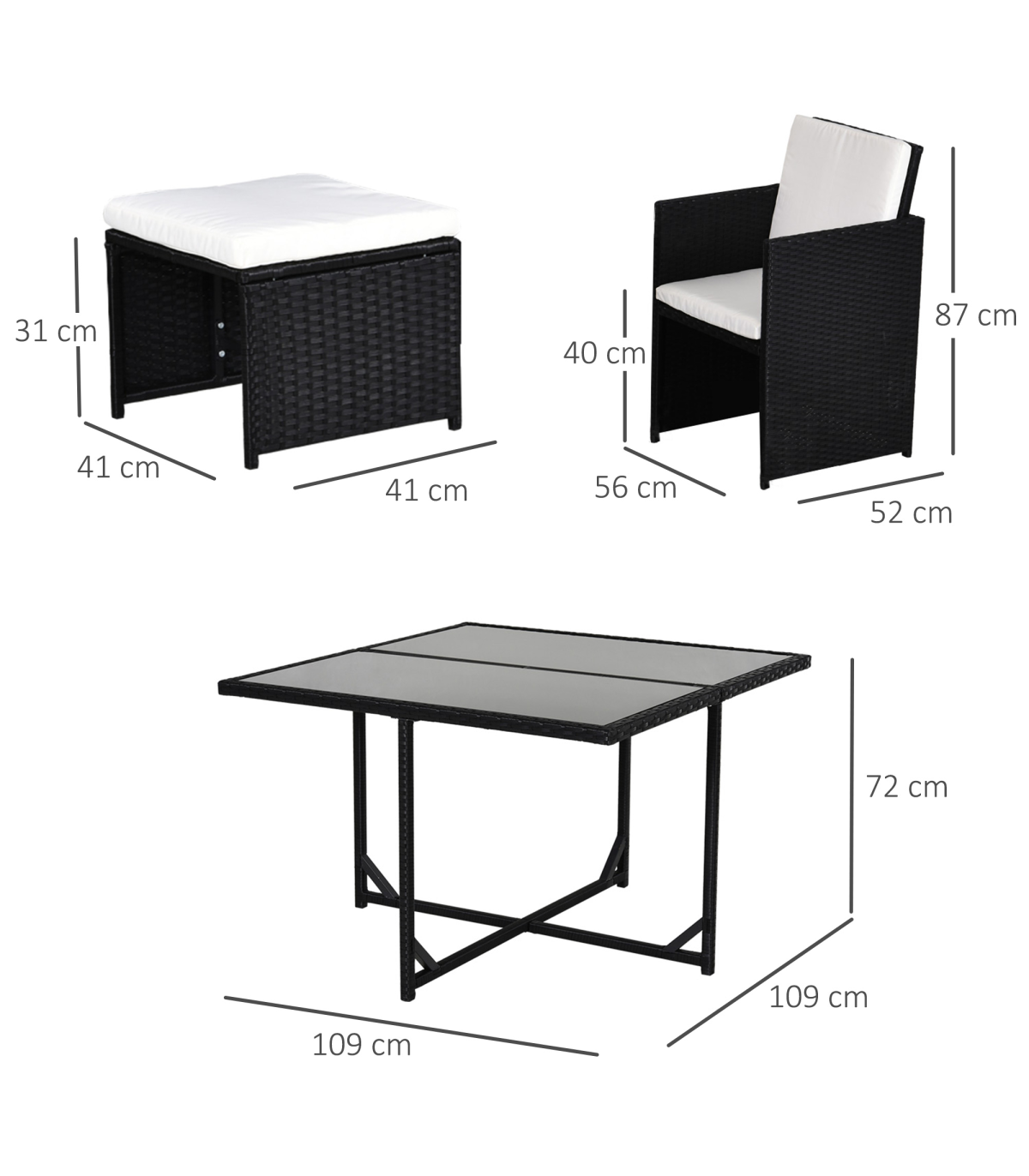 • Table Dimension: 109L x 109W x 72H (cm)