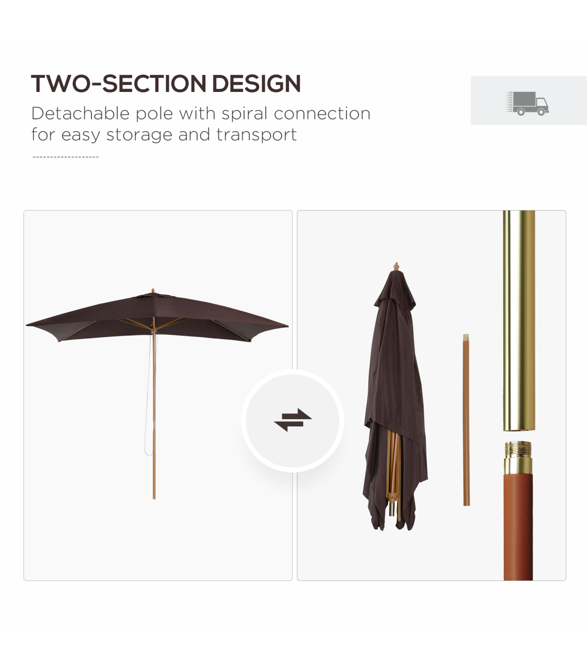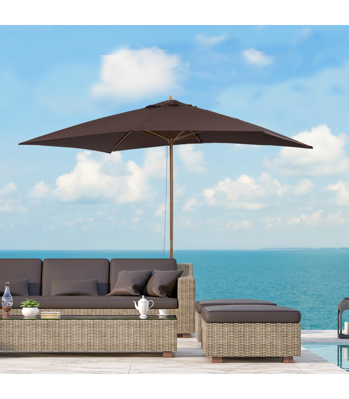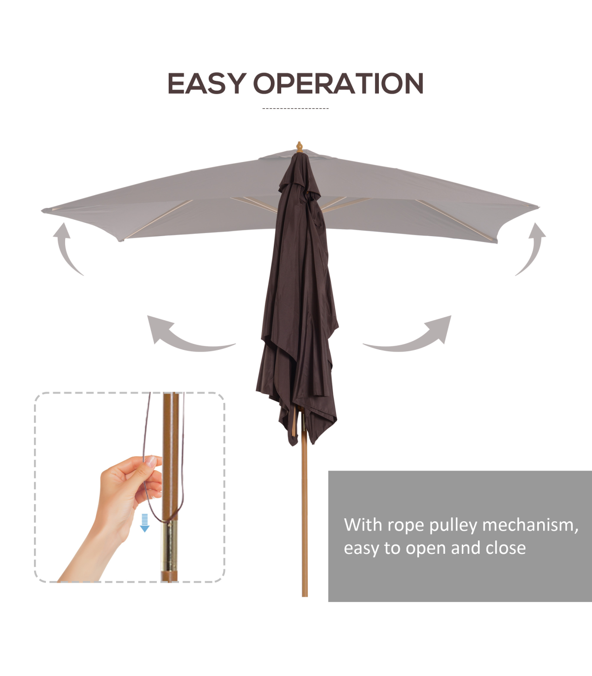 3x2m Wooden Patio Parasol Umbrella