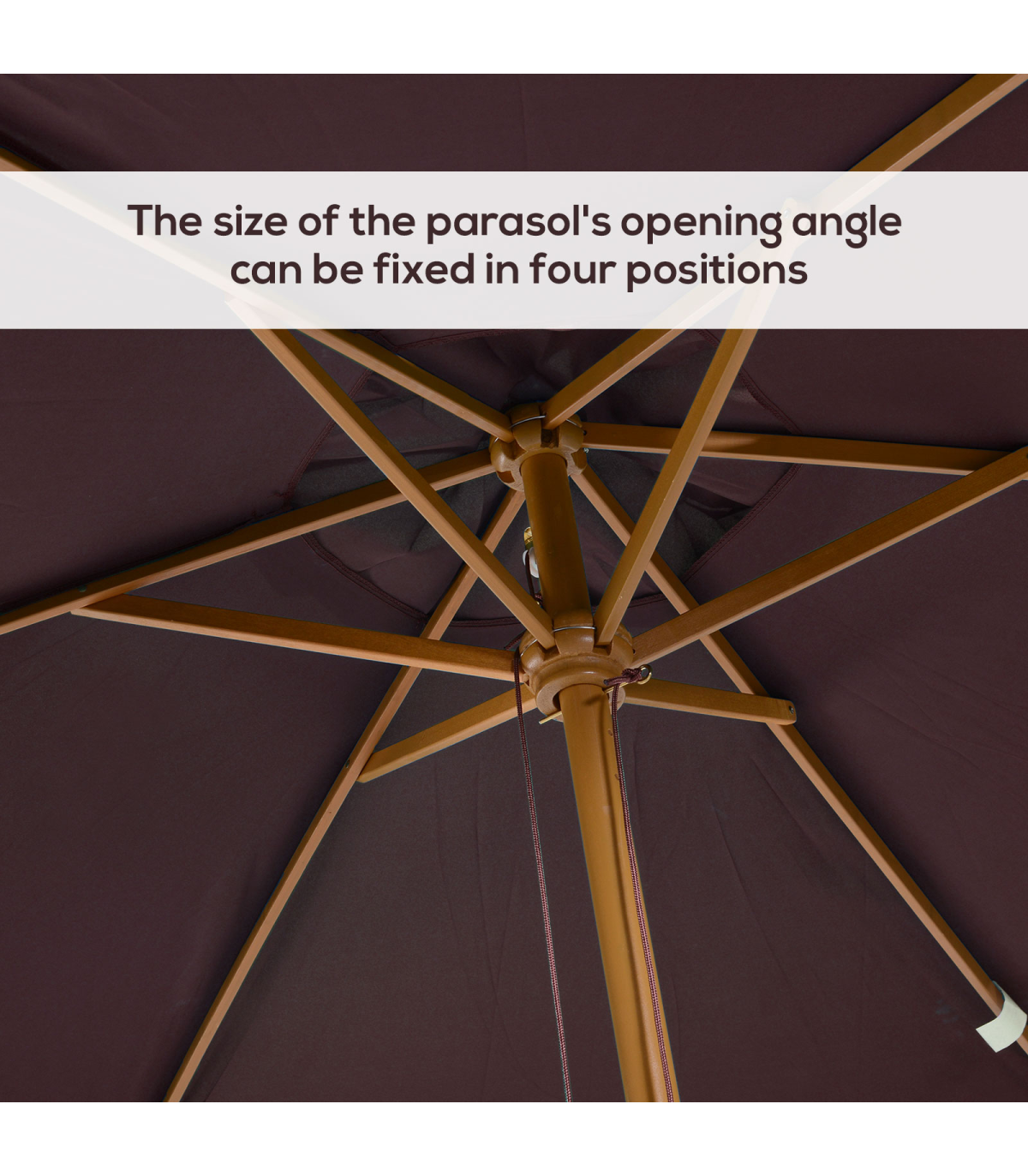 - Parasol supported by 6 wooden ribs.