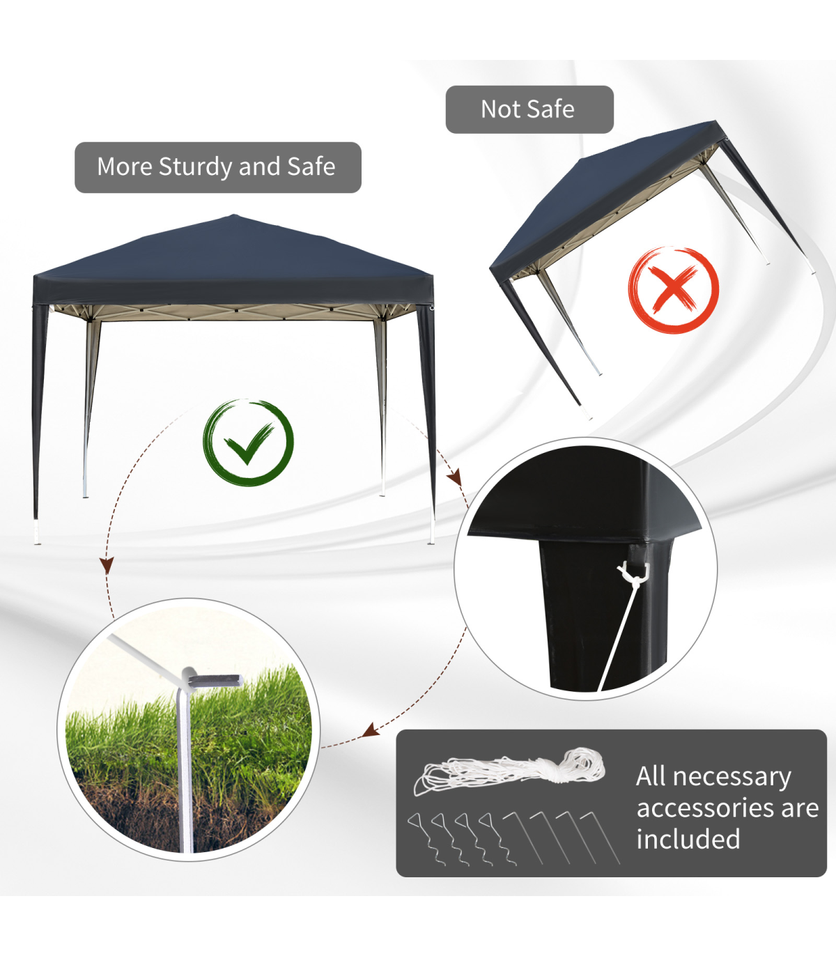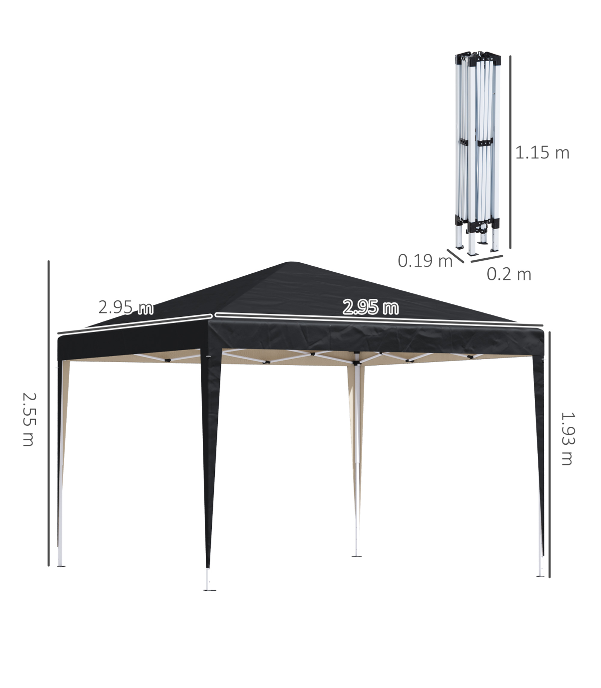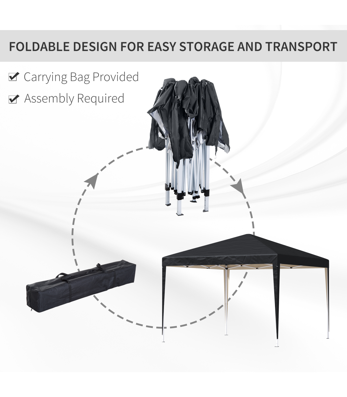 This New 3 x 3(m) Easy folding gazebo is a great, no-fuss outdoor shelter. It is Ideal for family parties, weddings, picnics, sports events, outdoor vendors, craft fairs, job sites and camping trips. This easy up canopy provides easy set-up and take down in less than one minute. It also comes with a portable carrying case. This canopy has a high quality Powder Coated Steel Frame which has High Strength.