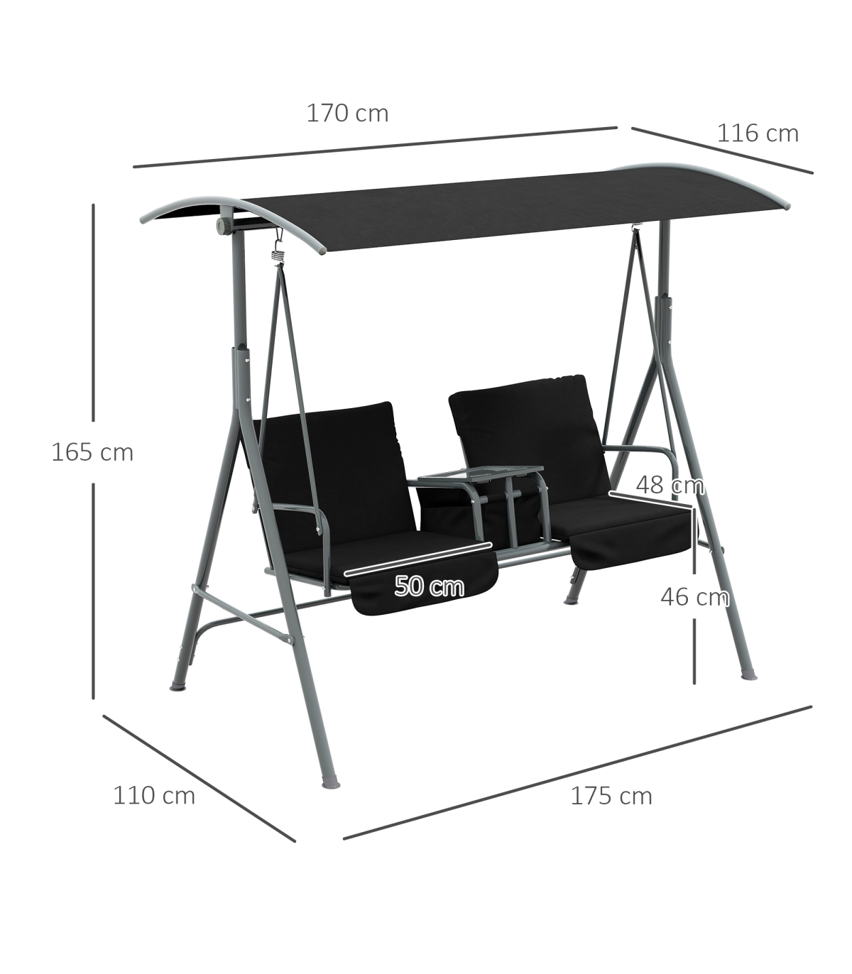 - Product Dimension: 175L x 110W x 165H cm