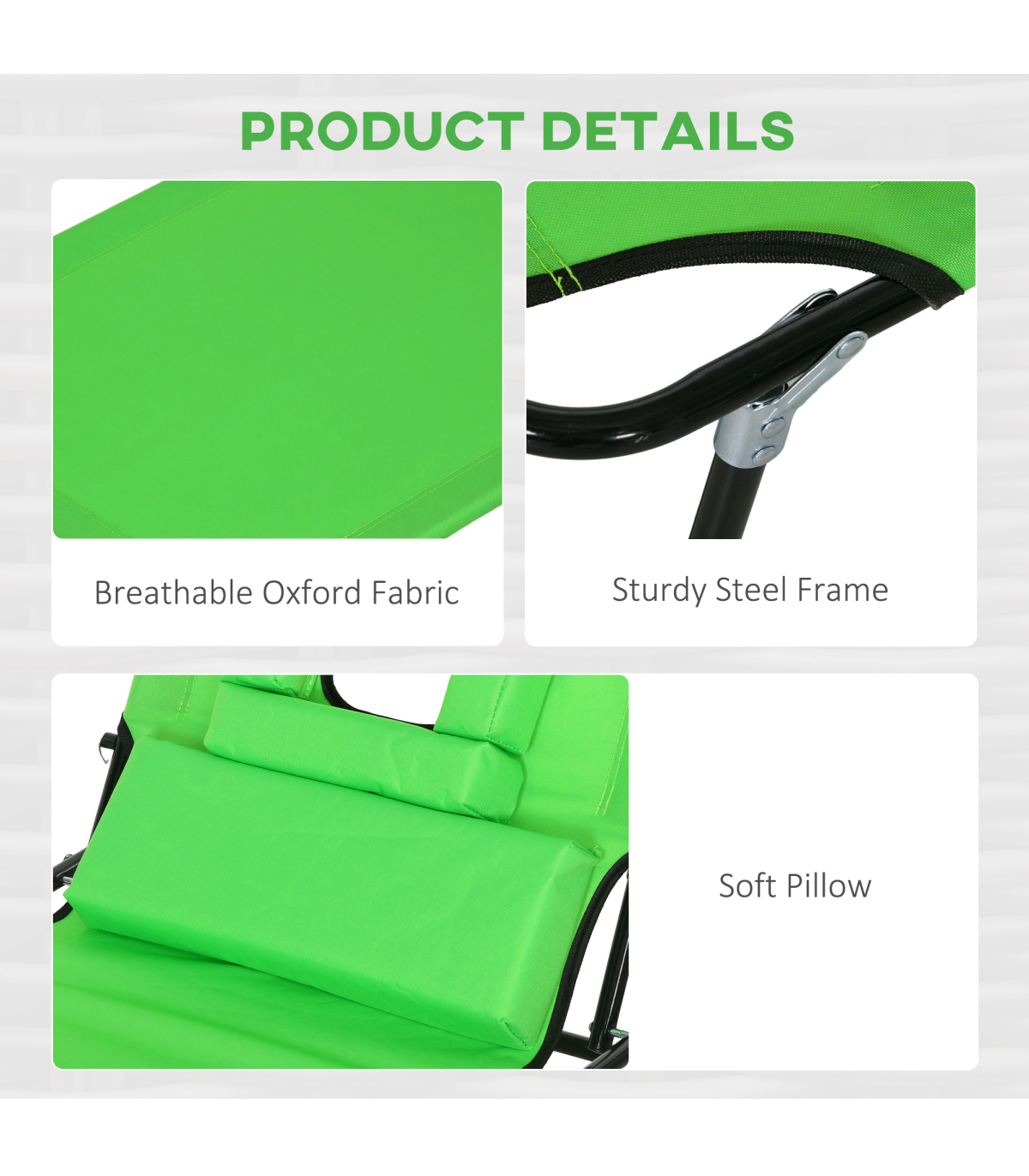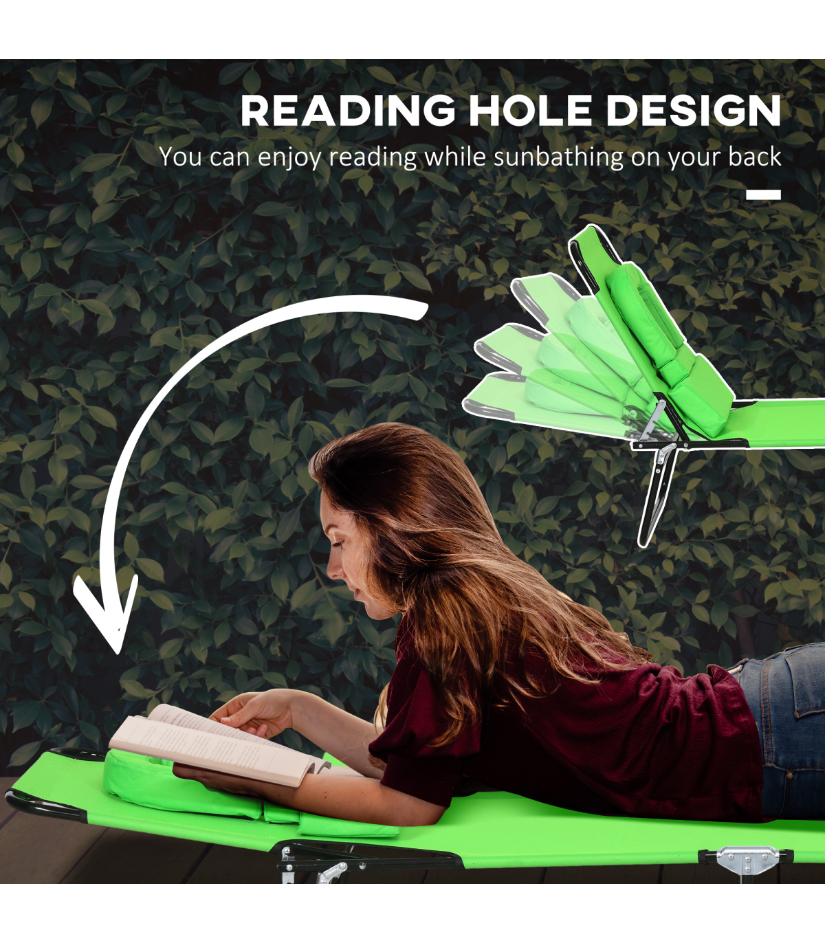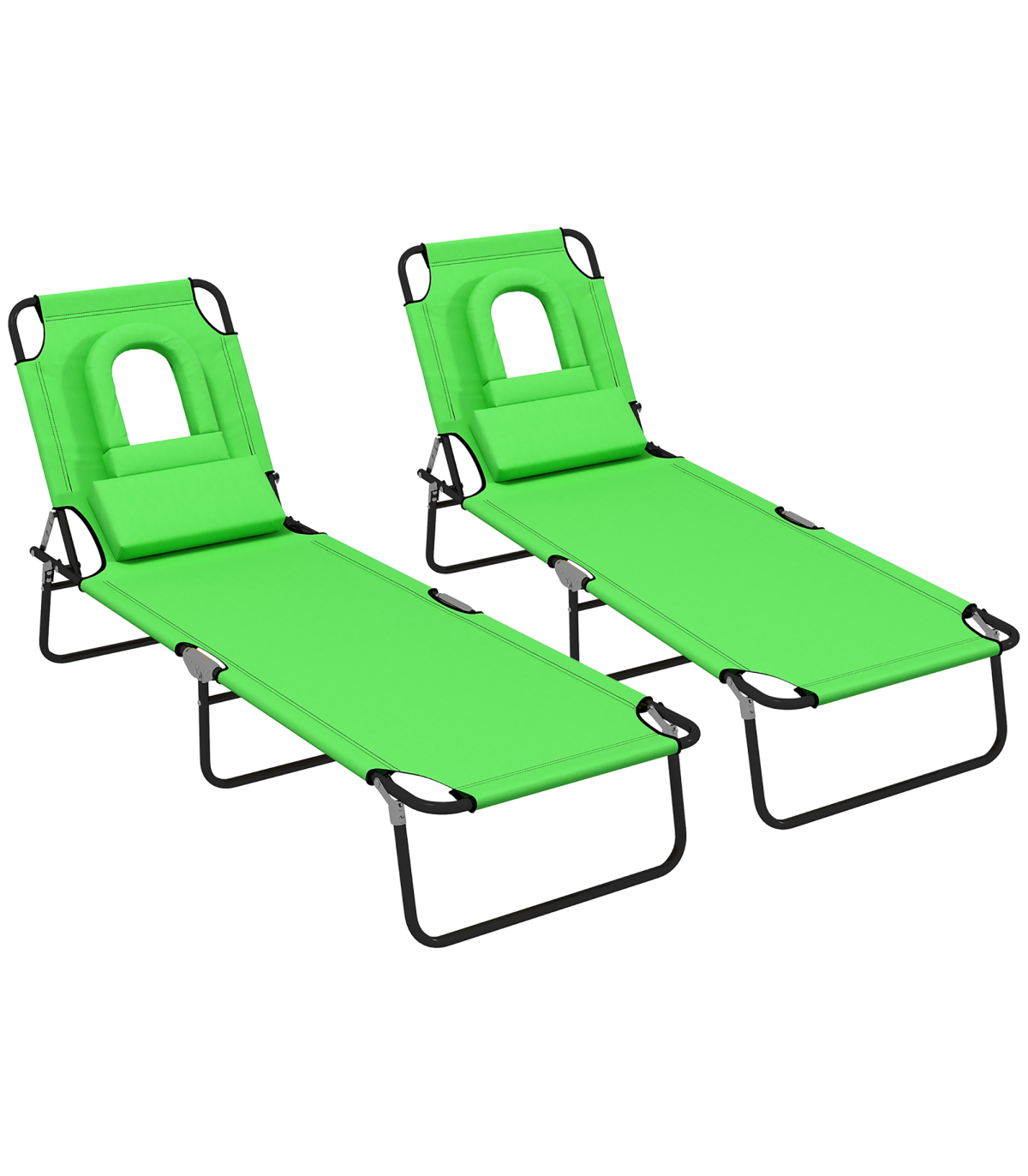 Outsunny Folding Sun Lounger Set of 2 Reclining Chair with Reading Hole Green