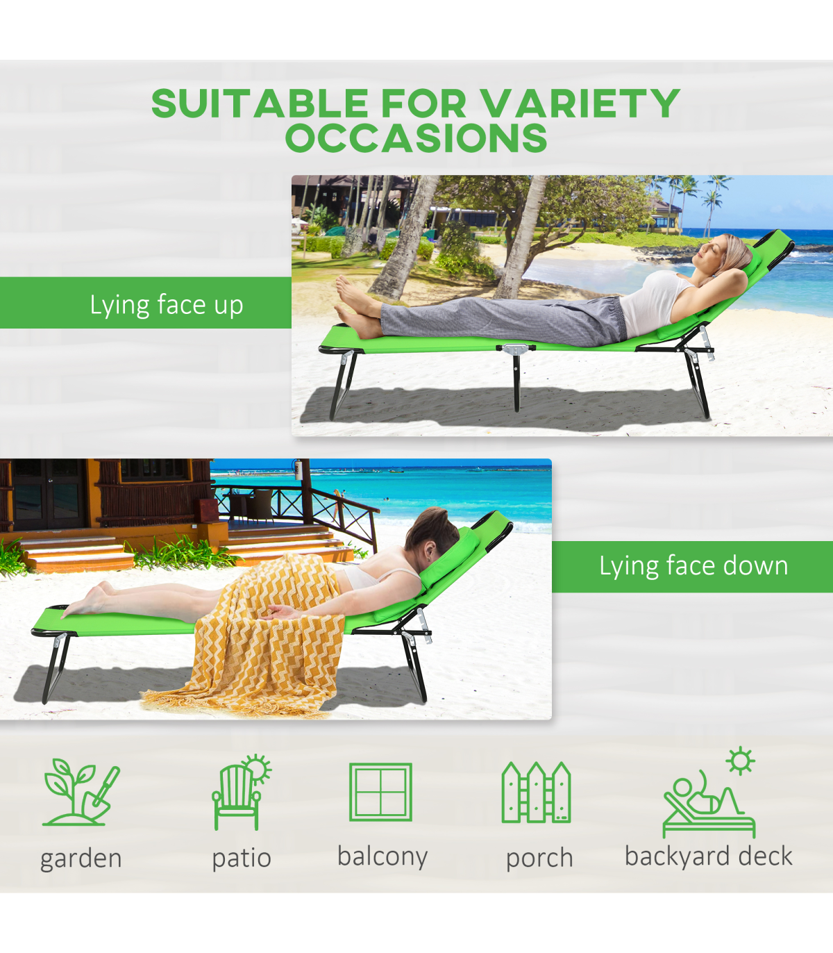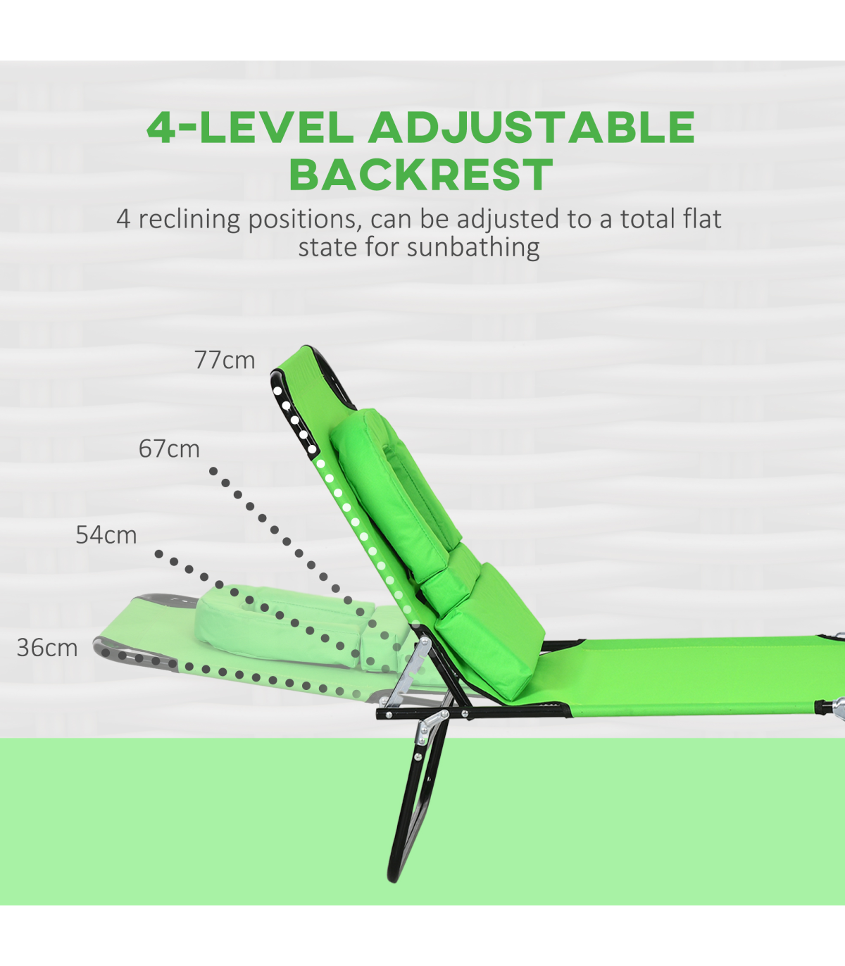 A cool update on the classic sun lounger - go for this massage-style garden chair from Outsunny. The design features a padded head hole at the front, which allows you to comfortably rest your face in: perfect for when relaxing on your front - or even reading a book! The metal frame supports up to 120kg. The back is adjustable to four positions - it's easy to set and lock to a position you like best. So just sit back and relax.