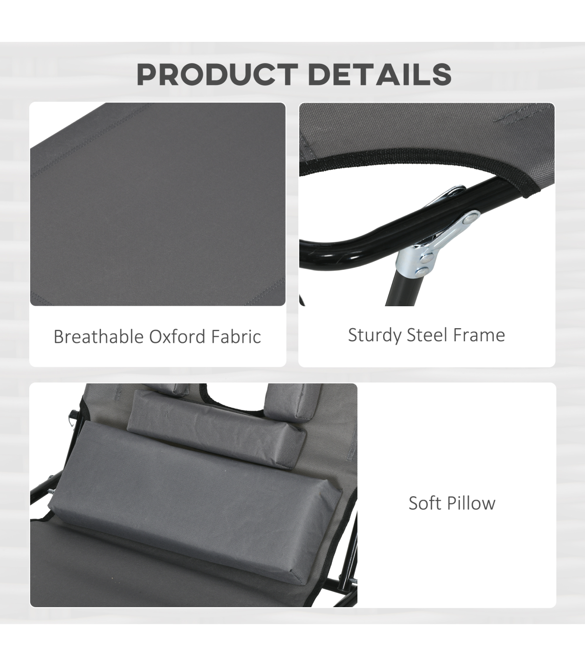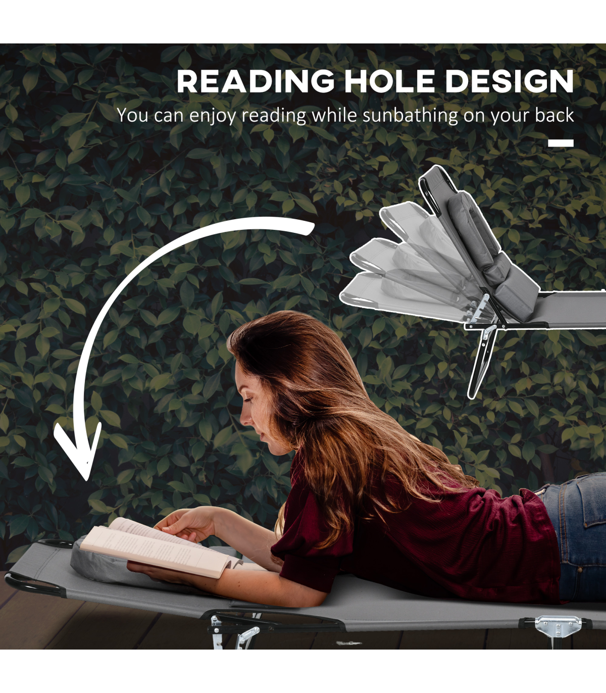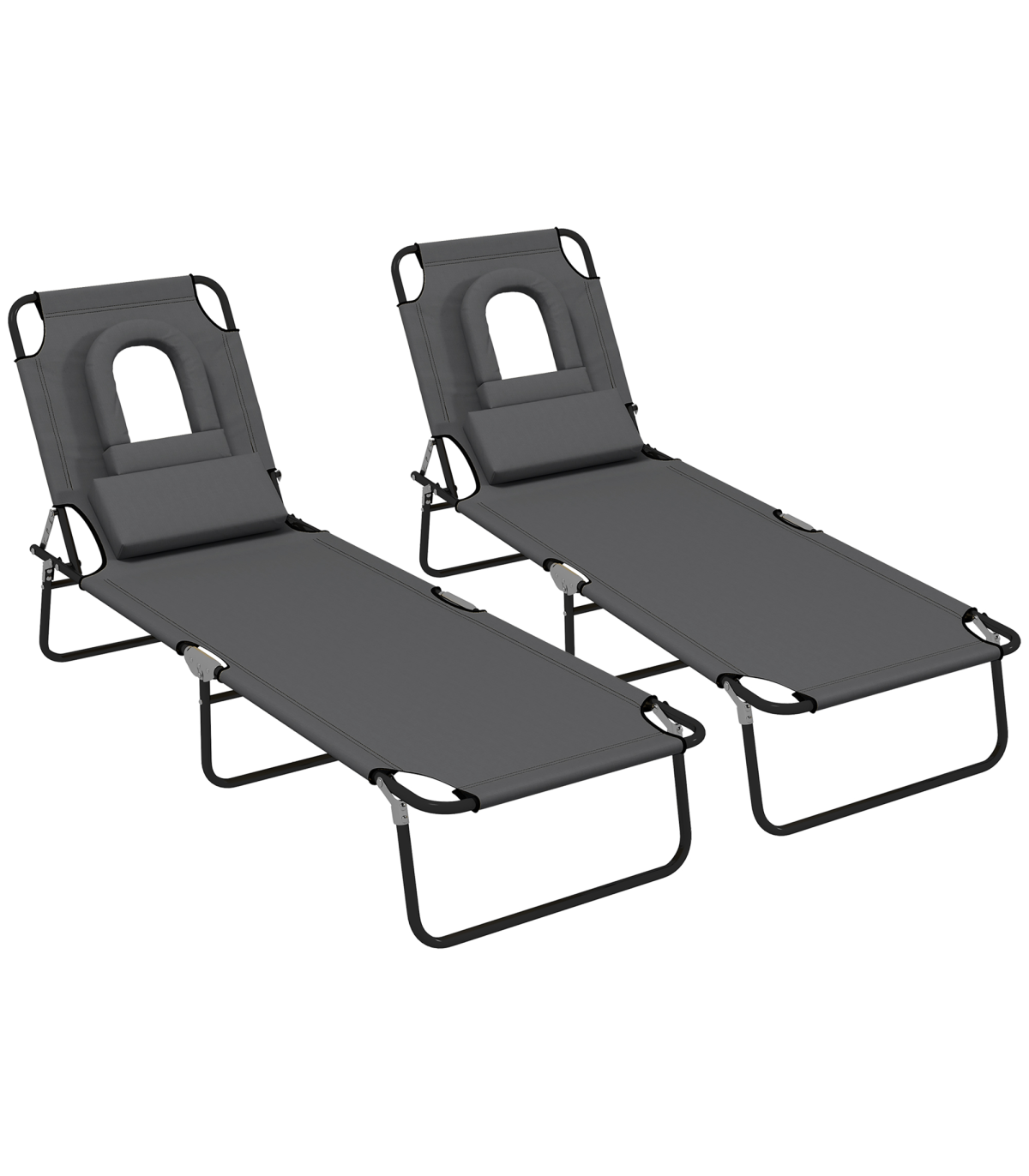 Outsunny Folding Sun Lounger Set of 2 Reclining Chair with Reading Hole Grey