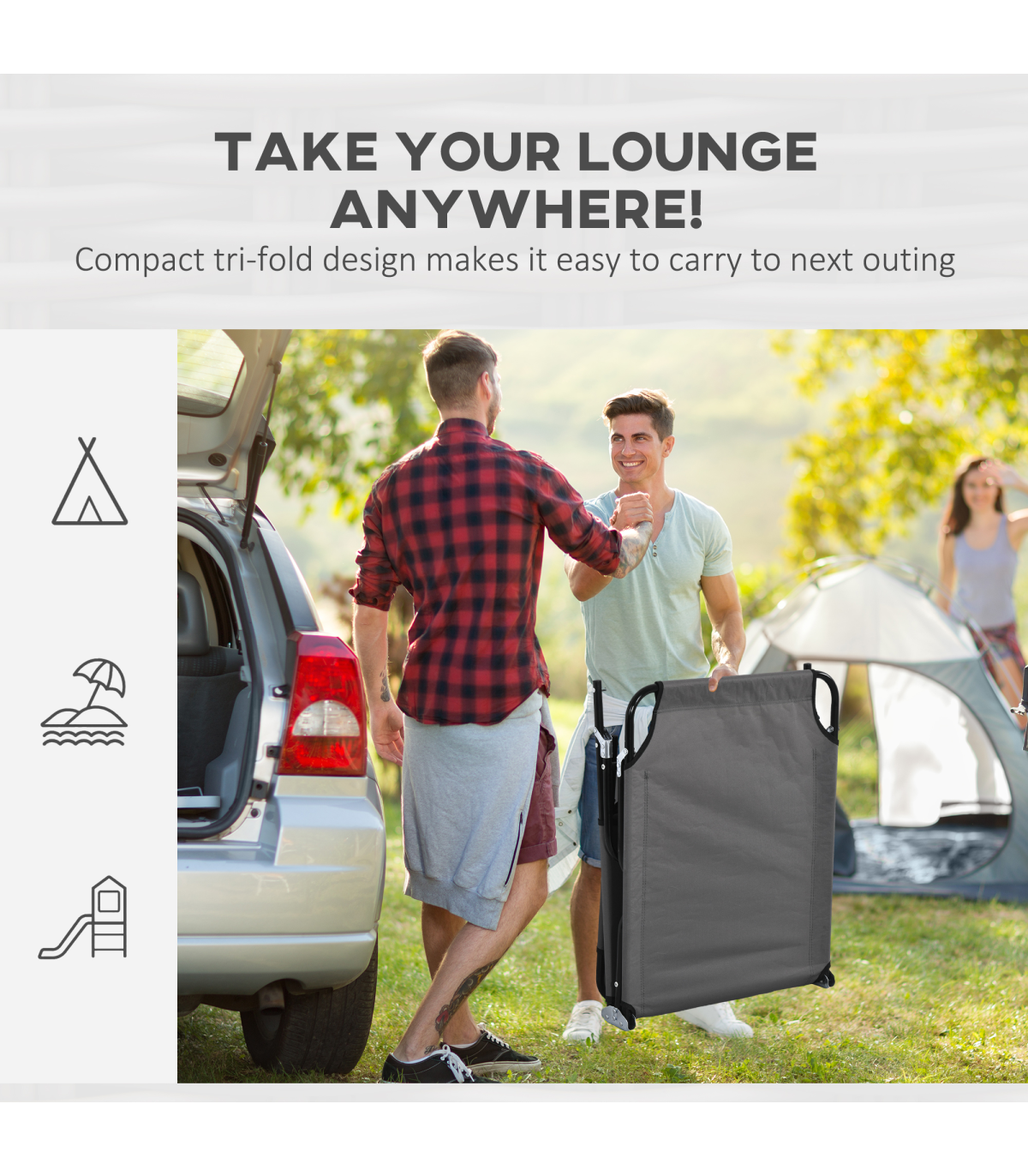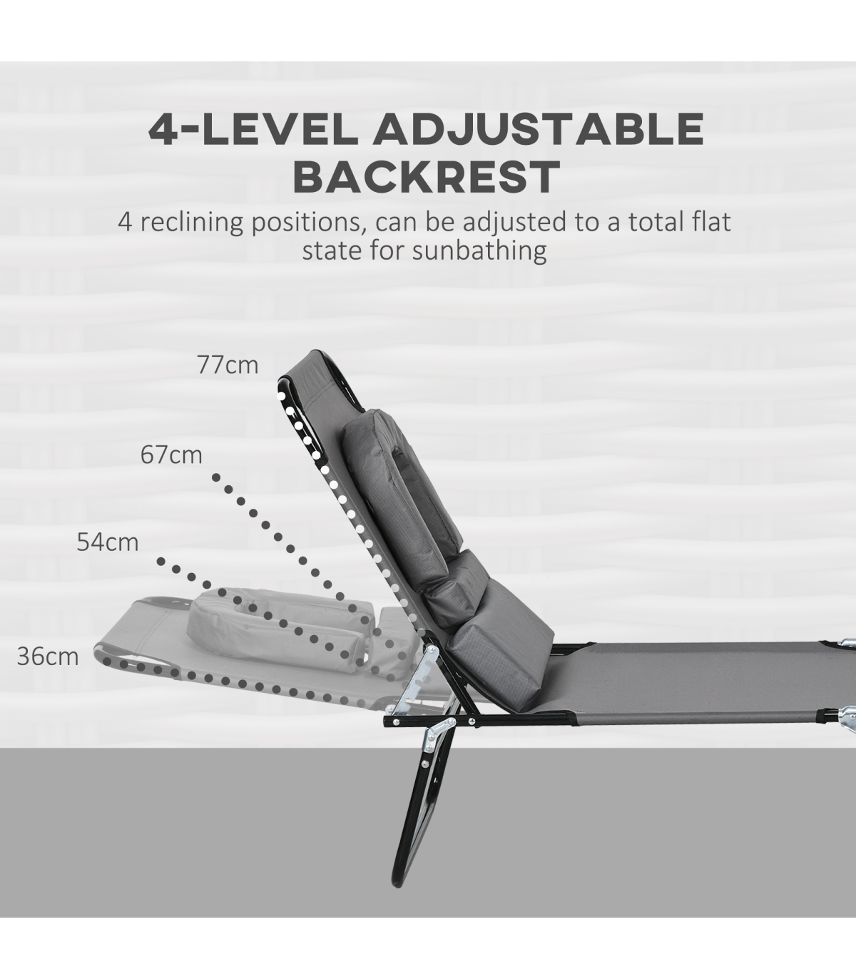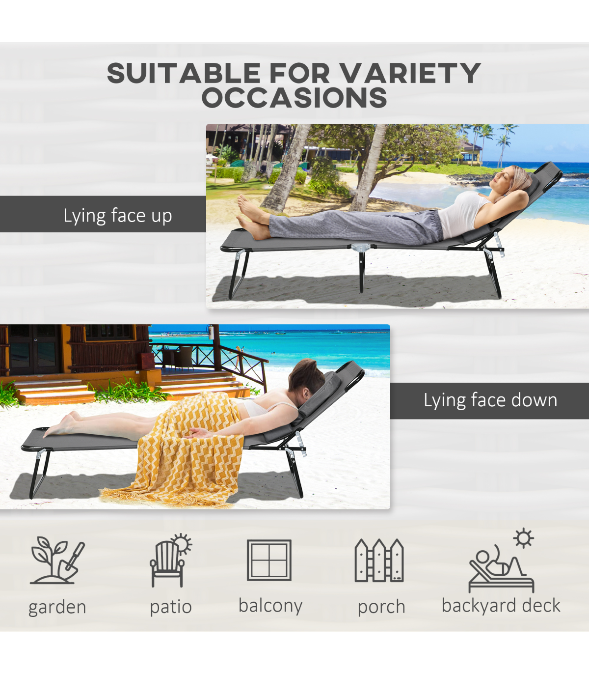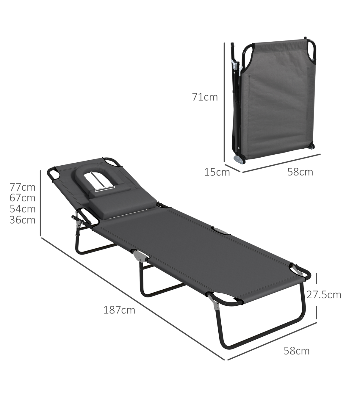 Outsunny Folding Sun Lounger Set of 2 Reclining Chair with Reading Hole Grey