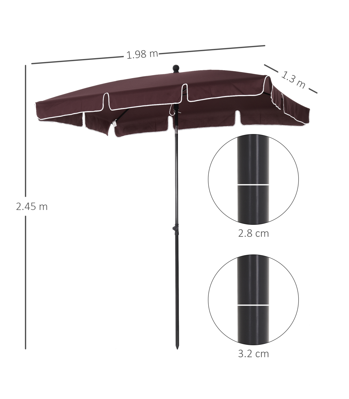 Make the sunny days even brighter with this parasol umbrella from Outsunny. Made from aluminium, the pole provides strength and durability for years to come and supports the large canopy shade with four ribs for extra strength. Adjustable to different angles, the shade can provide sun shelter in many different directions up to 2.5? in total, which is great for staying out all day long. It will perfectly protect you whilst you enjoy the warm and sunny weather.