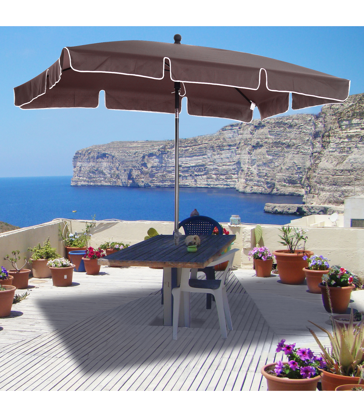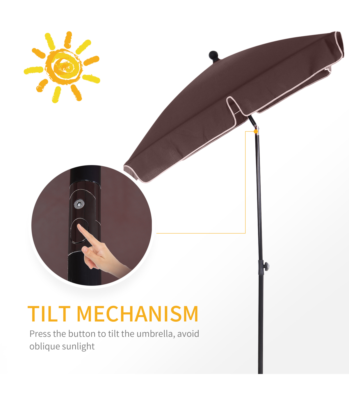 • Tilt mechanism to move the umbrella to the direction you require