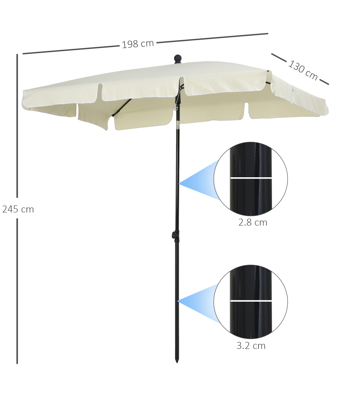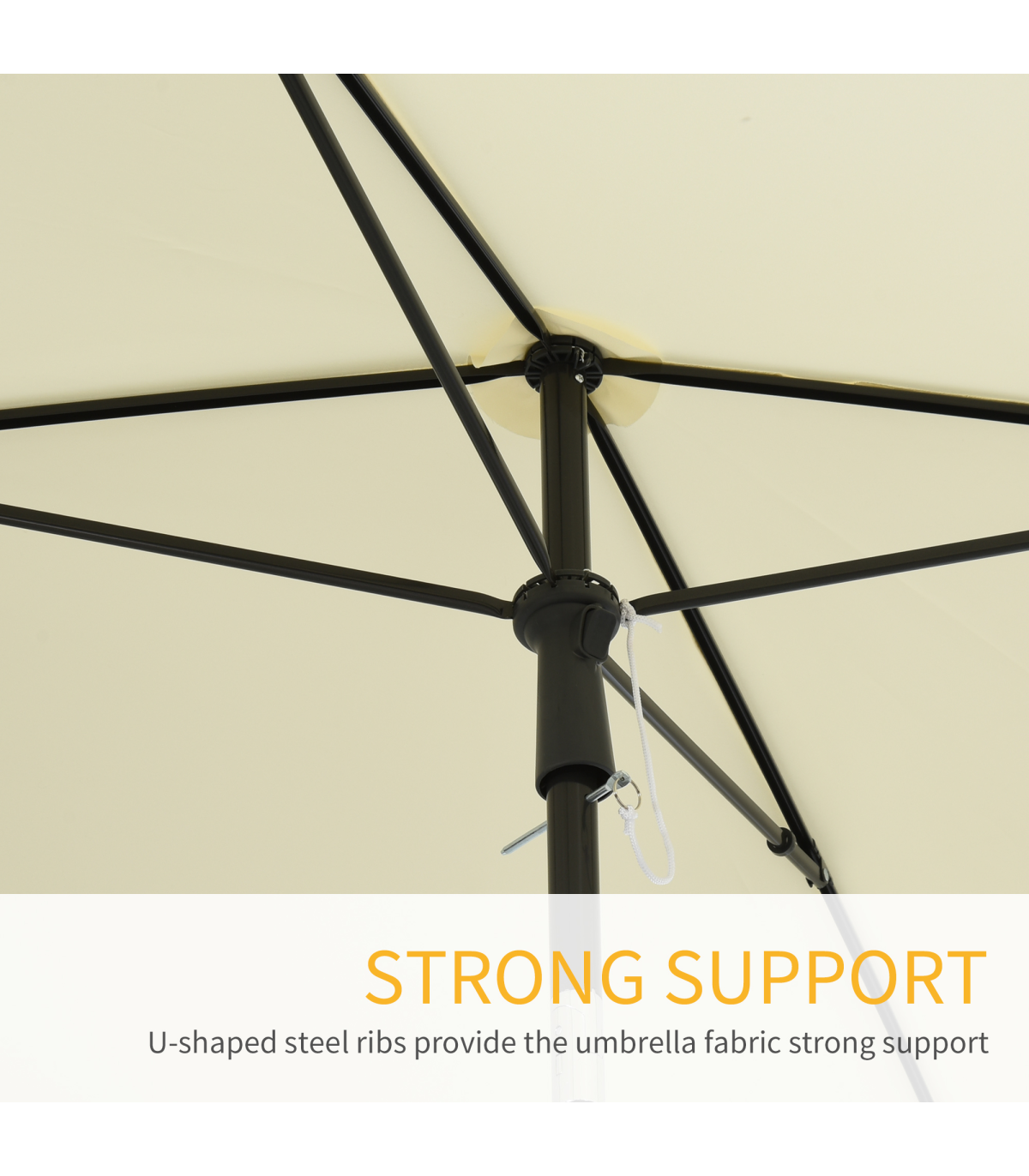 Make the sunny days even brighter with this parasol umbrella from Outsunny. Made from aluminium, the pole provides strength and durability for years to come and supports the large canopy shade with four ribs for extra strength. Adjustable to different angles, the shade can provide sun shelter in many different directions up to 2.5? in total, which is great for staying out all day long. It will perfectly protect you whilst you enjoy the warm and sunny weather.