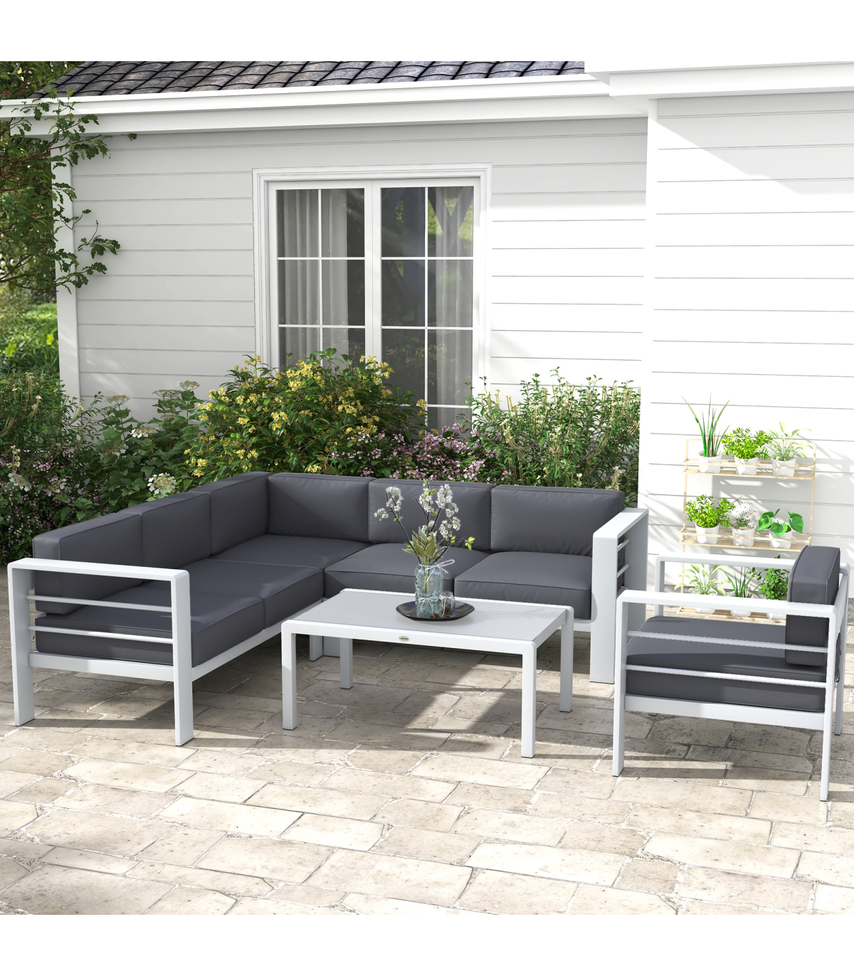 Outsunny 5 PCs Garden Sofa Set w/ Cushions, Aluminium Furniture Sets, Grey